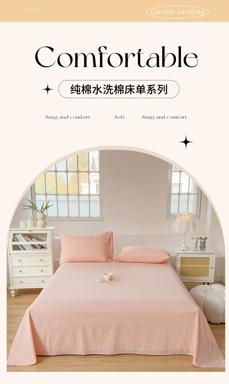 • 91家纺网 家纺一手货源 找家纺 柠萌家居 2026年新款全棉A类母婴级水洗棉纯棉床单纯色系列单品 浅粉 91家纺网 家纺一手货源 找家纺 柠萌家居 2026年新款全棉A类母婴级水洗棉纯棉床单纯色系列单品 浅粉