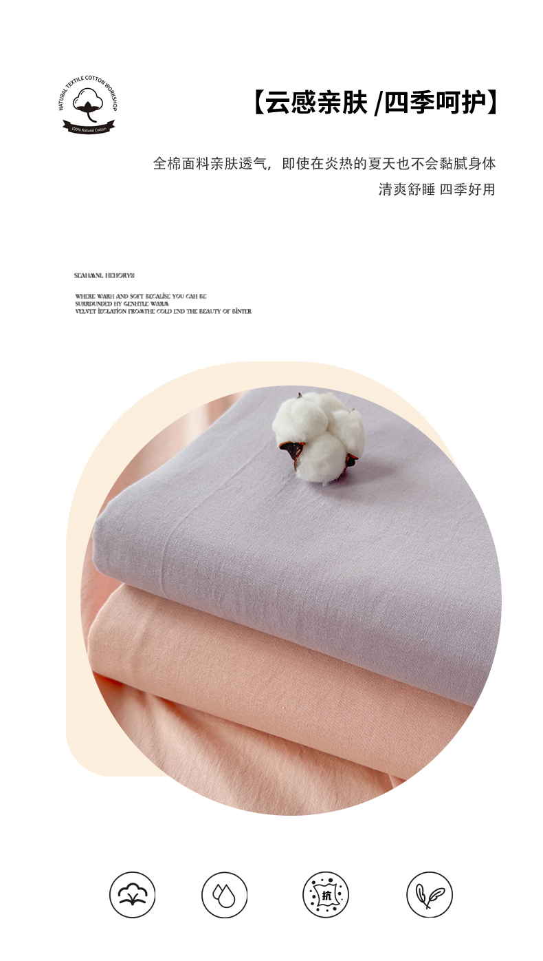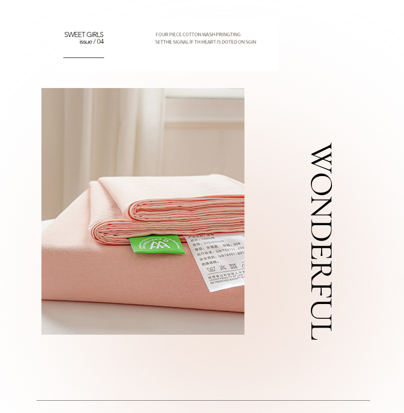 • 91家纺网 家纺一手货源 找家纺 柠萌家居 2026年新款全棉A类母婴级水洗棉纯棉床单纯色系列单品 浅粉
