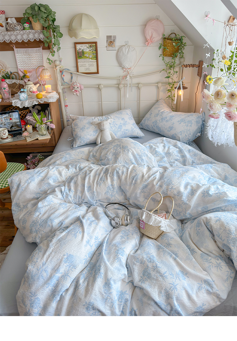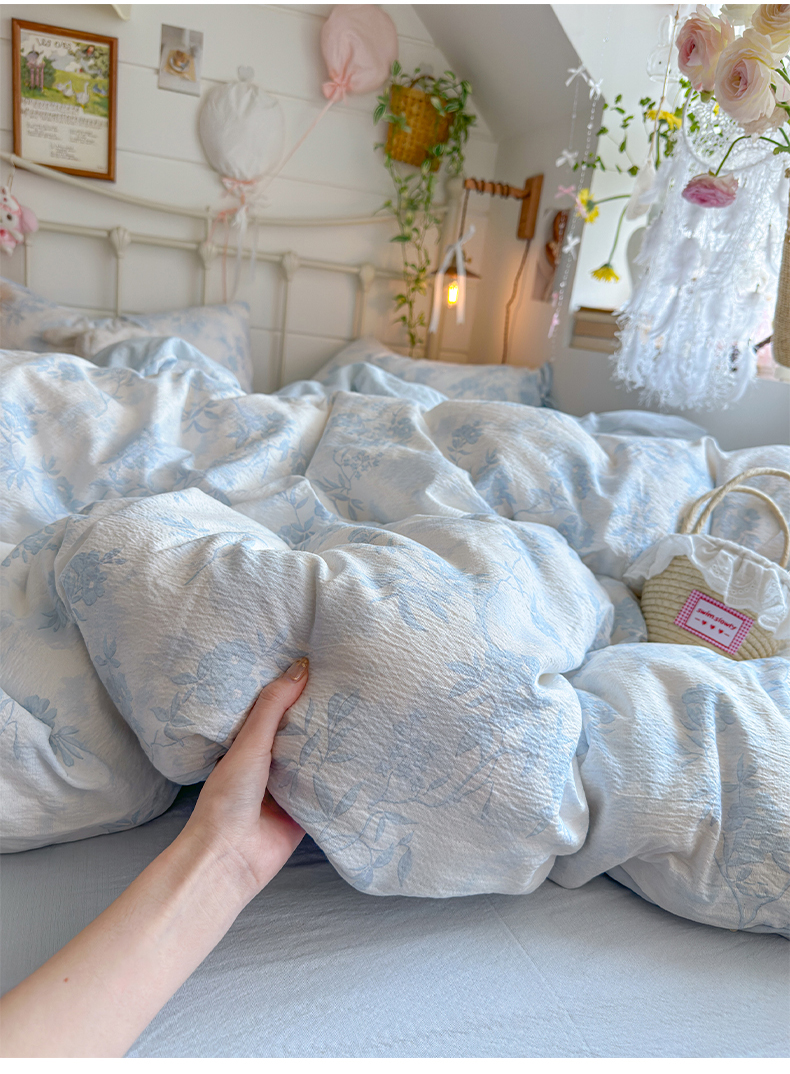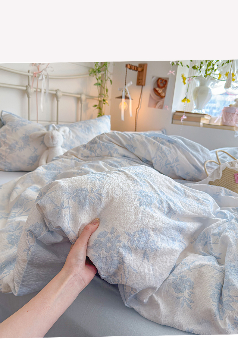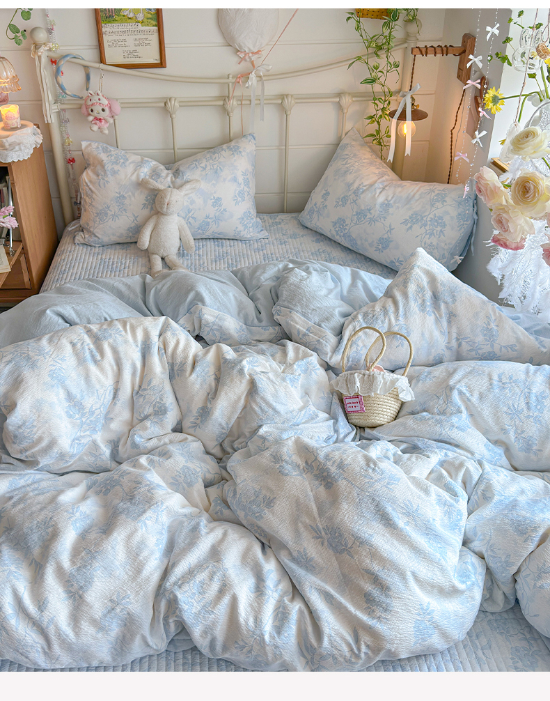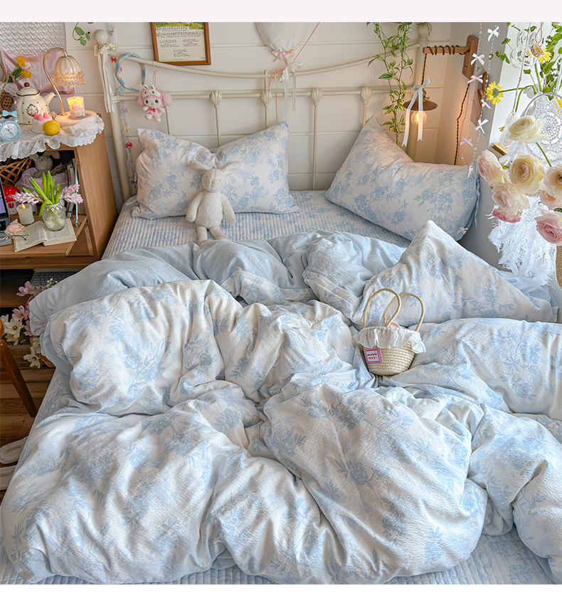 当前位置: 91家纺网 > 商品网购 > 床品套件 > 四件套 > 双层纱四件套 > 优选 2026新款小清新直播热卖款云感双层纱木棉四件套系列(小红书热款推荐) 冰菱花