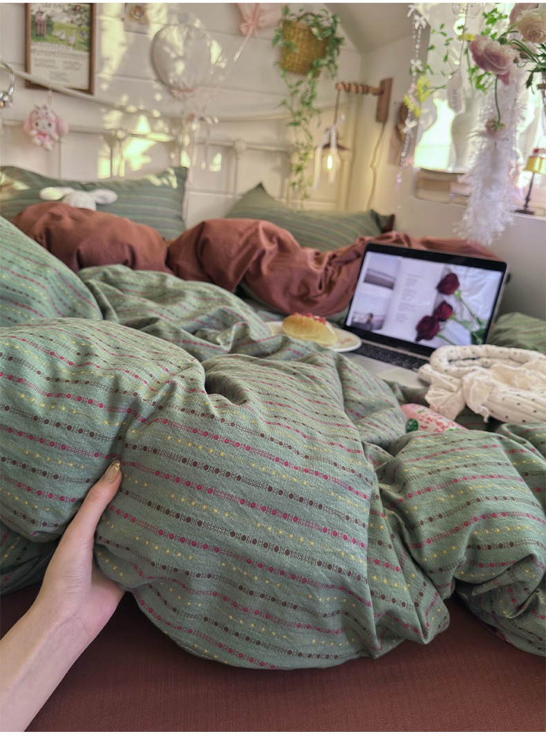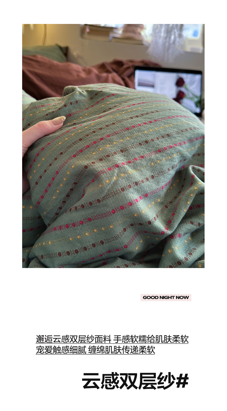 当前位置: 91家纺网 > 商品网购 > 床品套件 > 四件套 > 双层纱四件套 > 优选良品 2026新款小清新直播热卖款云感双层纱木棉四件套系列(小红书热款推荐) 费尔岛