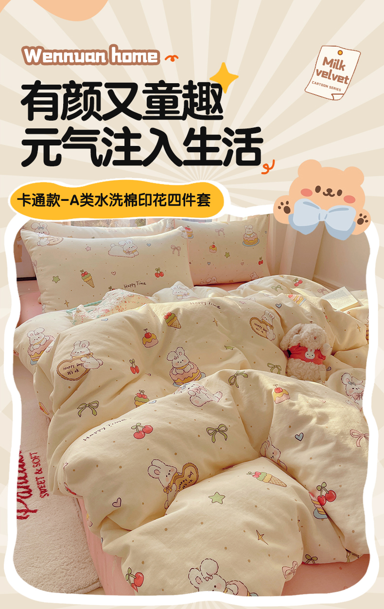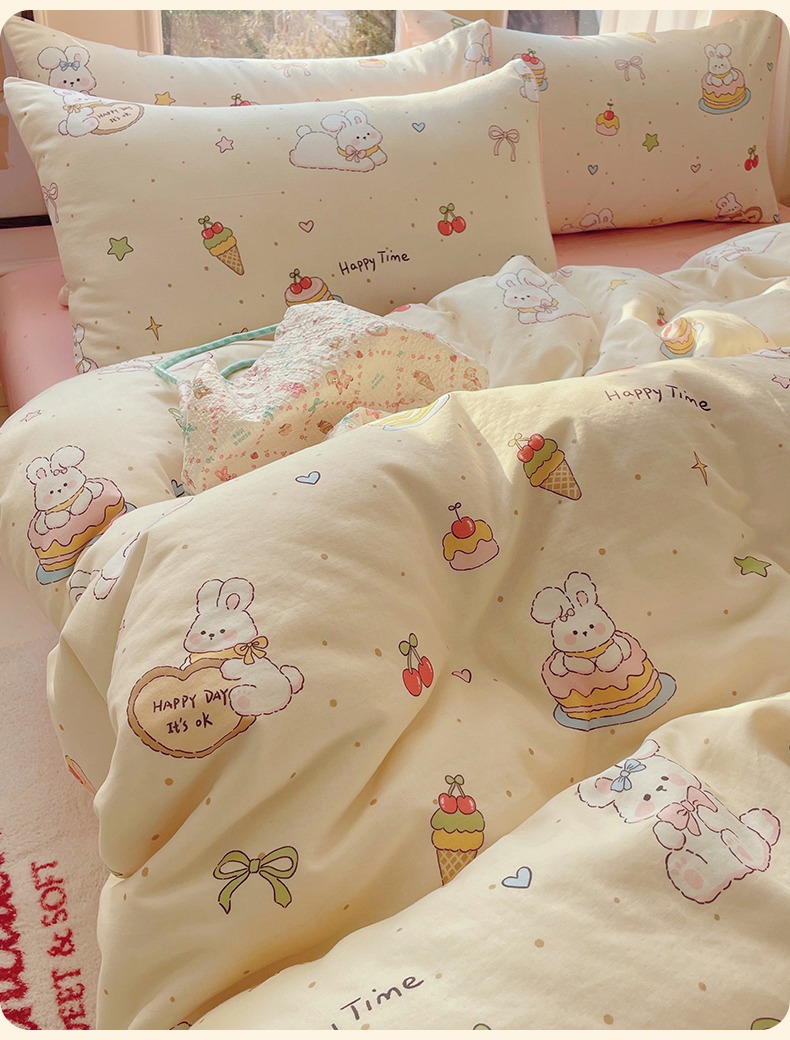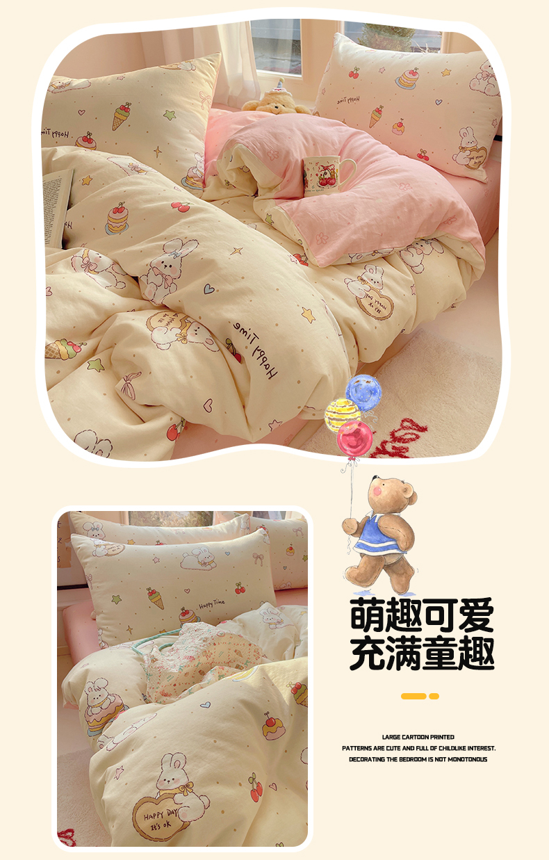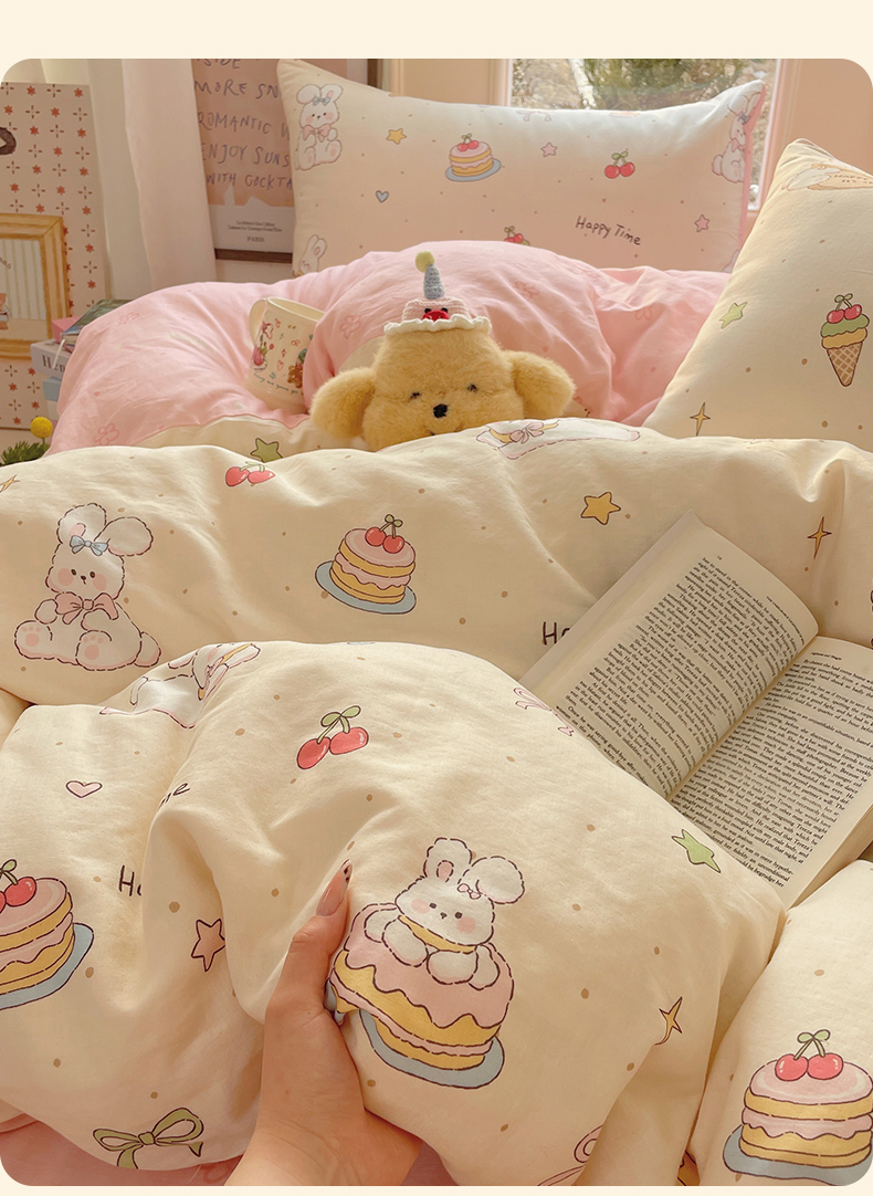 当前位置: 91家纺网 > 商品网购 > 床品套件 > 四件套 > 水洗棉四件套 > 盛秋家纺 2026新款水洗棉印花四件套-卡通系列二 生日派对+花朵粉