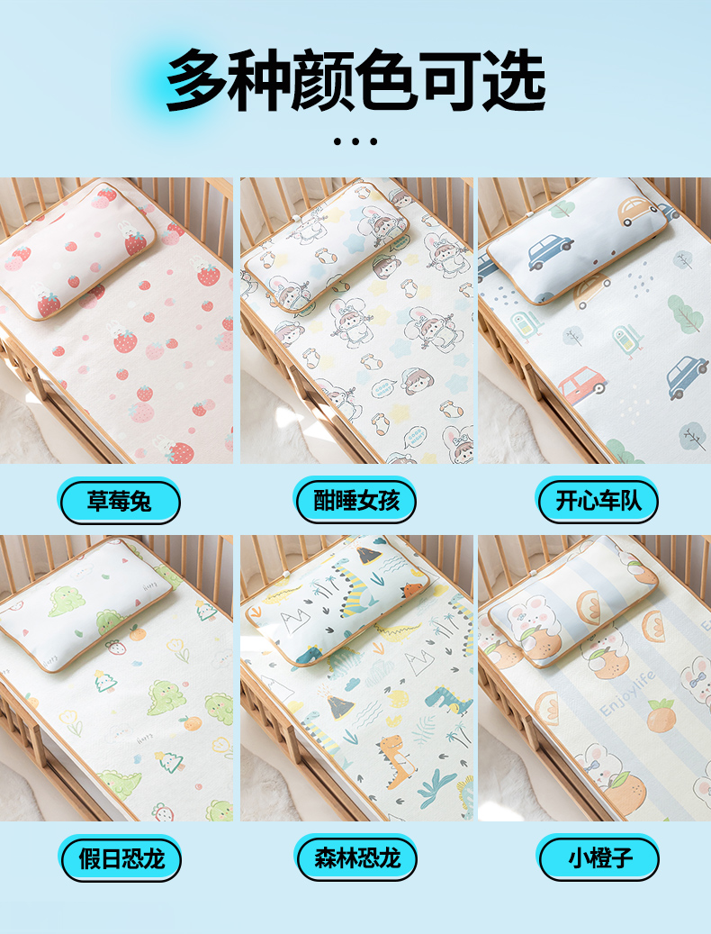 (总)嗨生活 2026新款600D冰丝凉席儿童婴儿床凉席幼儿园凉席拼床凉席席子,波点企鹅,粉红小兔,公主女孩,可爱美人鱼,可爱奶龙,恐龙世界,快乐男孩,西瓜女孩,宇宙超人