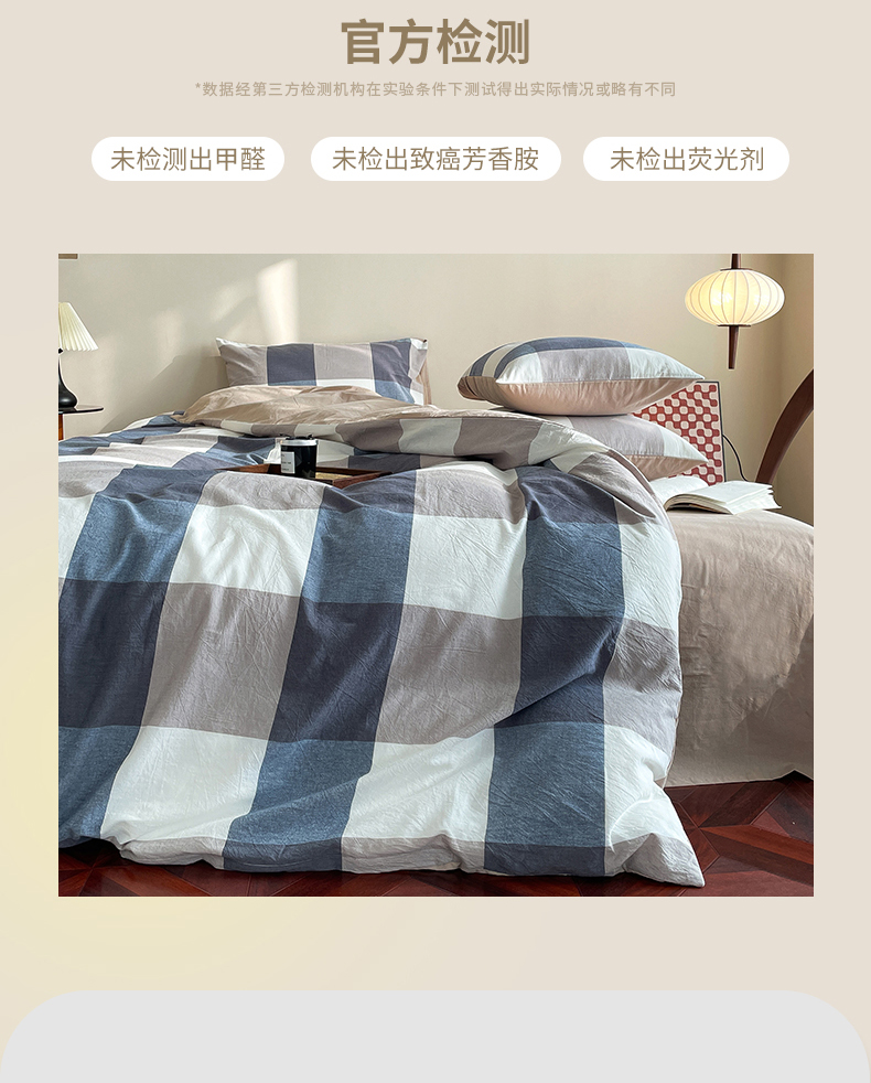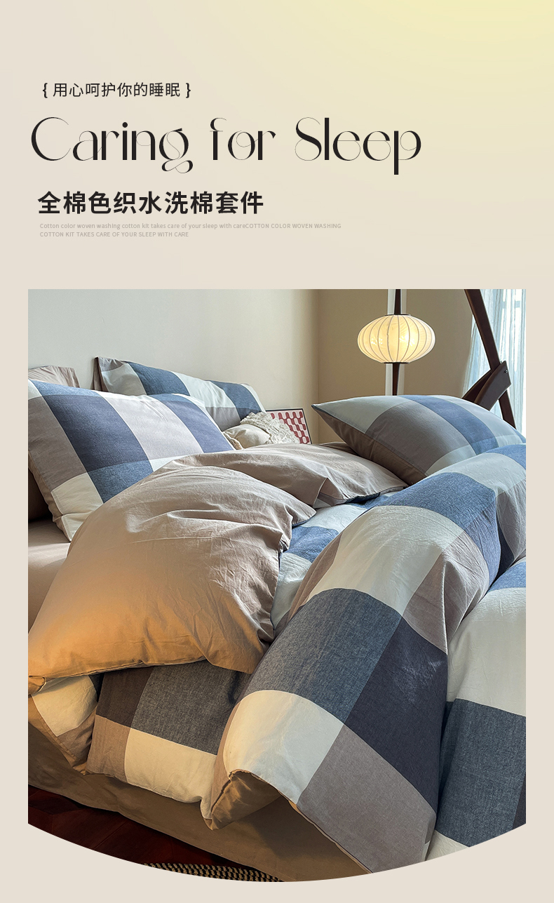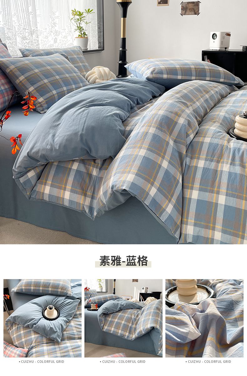 当前位置: 91家纺网 > 商品网购 > 床品套件 > 四件套 > 全棉普通四件套 > 春皖家纺 2026新款色织AB版水洗棉三件套四件套单品系列(四件套风格一) 素雅-蓝大格
