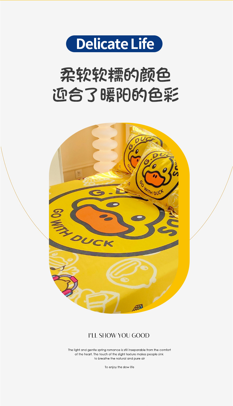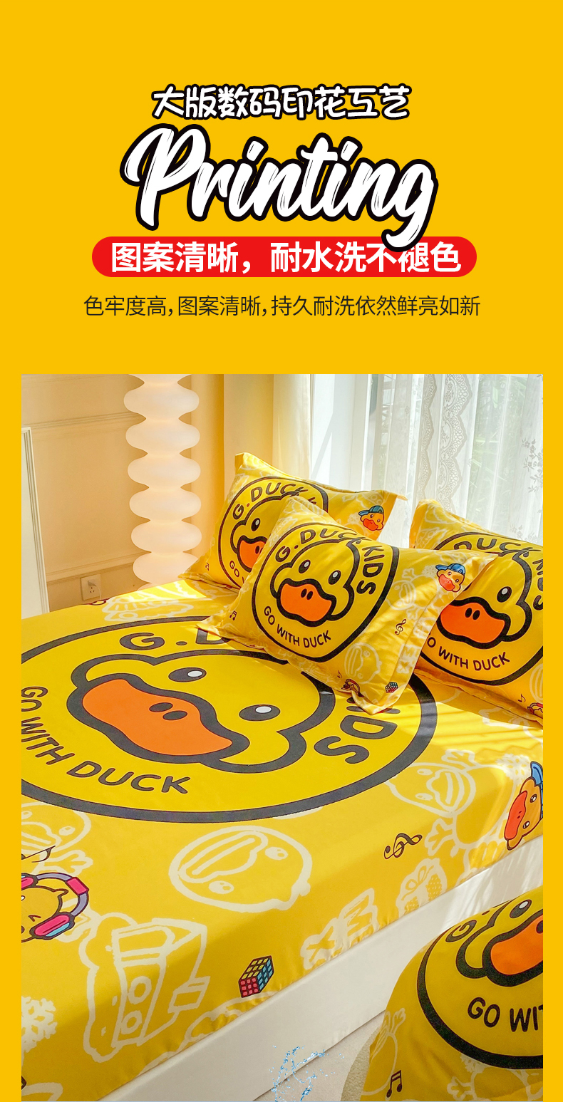 • 91家纺网 家纺一手货源 找家纺 一电 2026新款卡通床单床笠棕垫床套防尘罩席床垫保护套卡通儿童上下床单床笠-第四批 黄小鸭