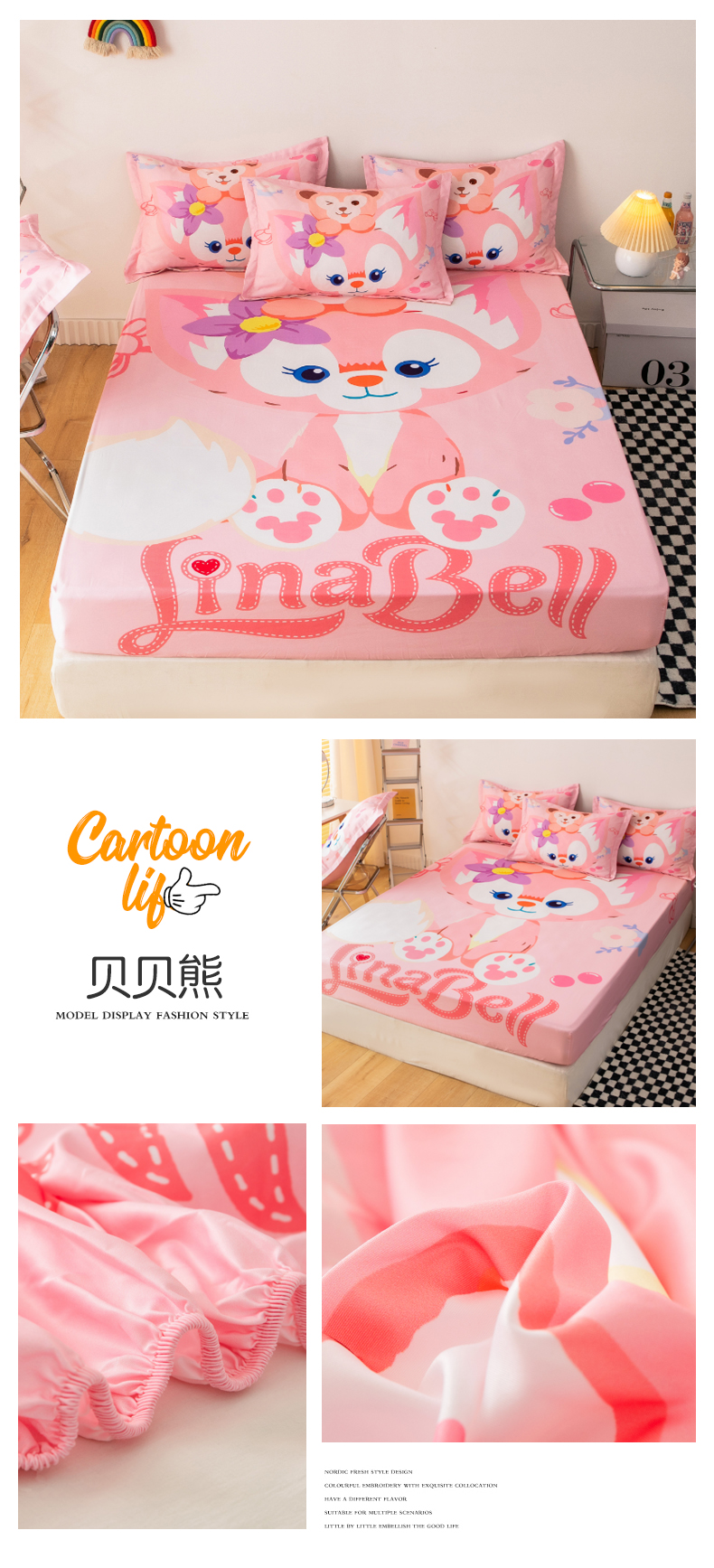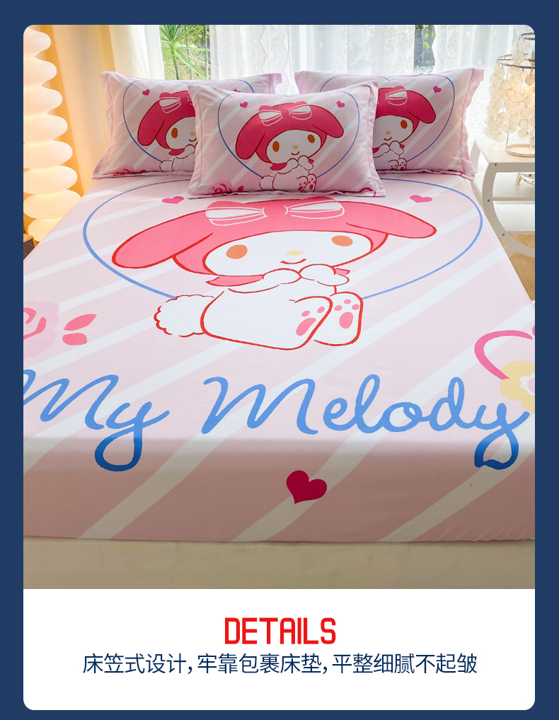 • 91家纺网 家纺一手货源 找家纺 一电 2026新款卡通床单床笠棕垫床套防尘罩席床垫保护套卡通儿童上下铺床单床笠-第五批 咪咪美乐