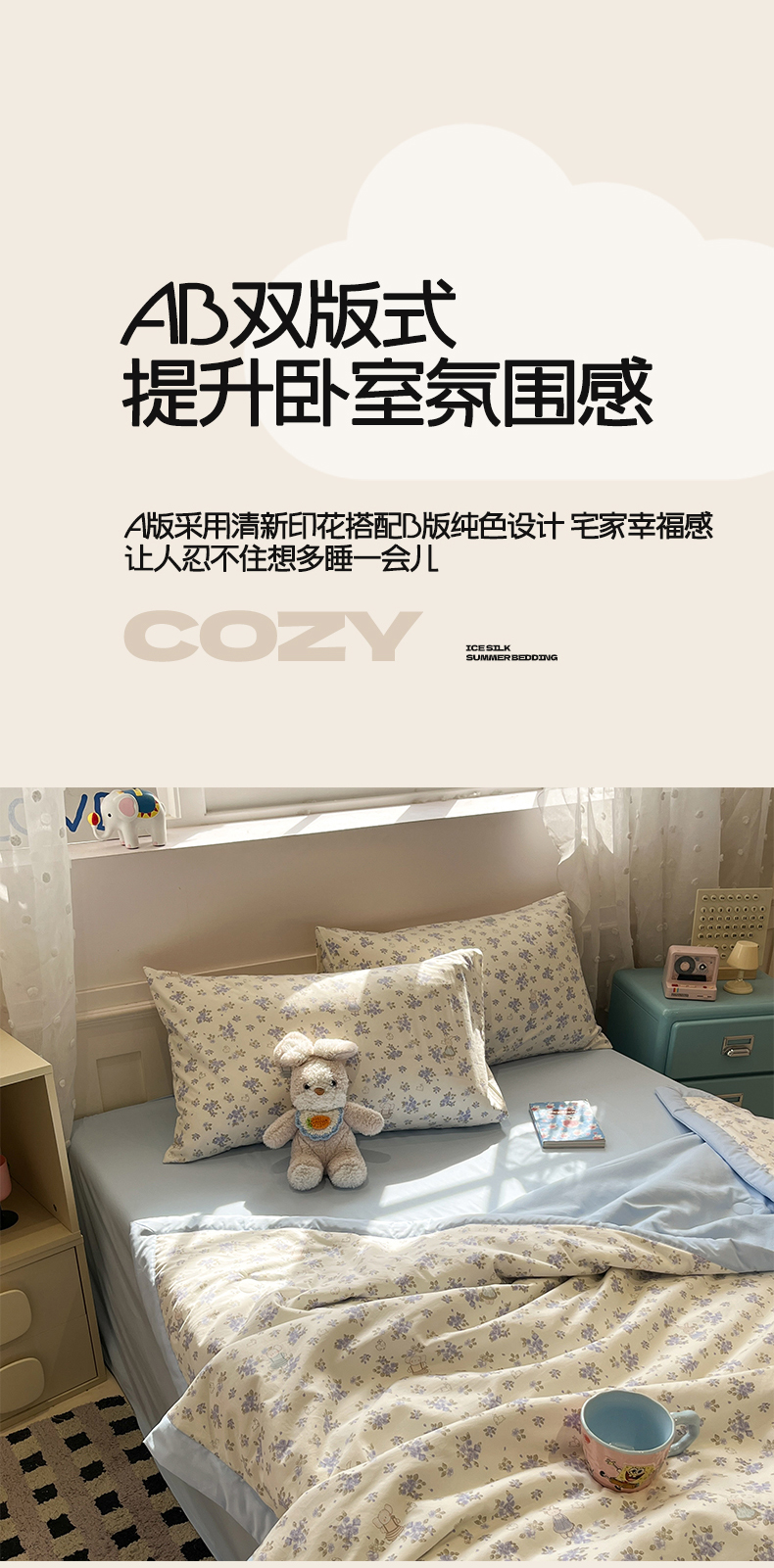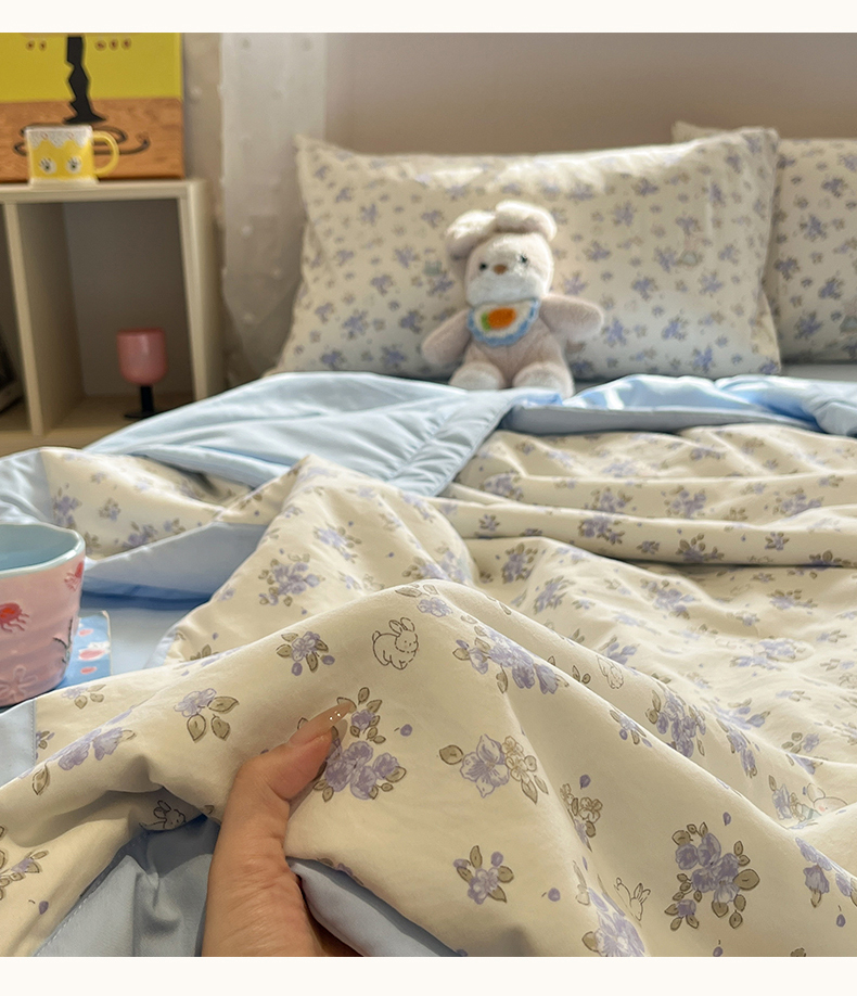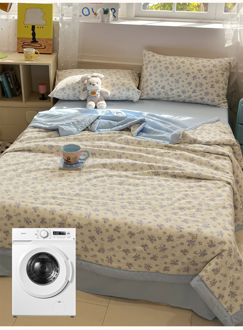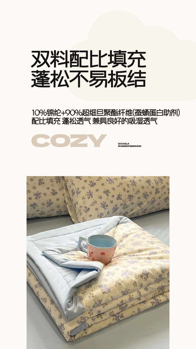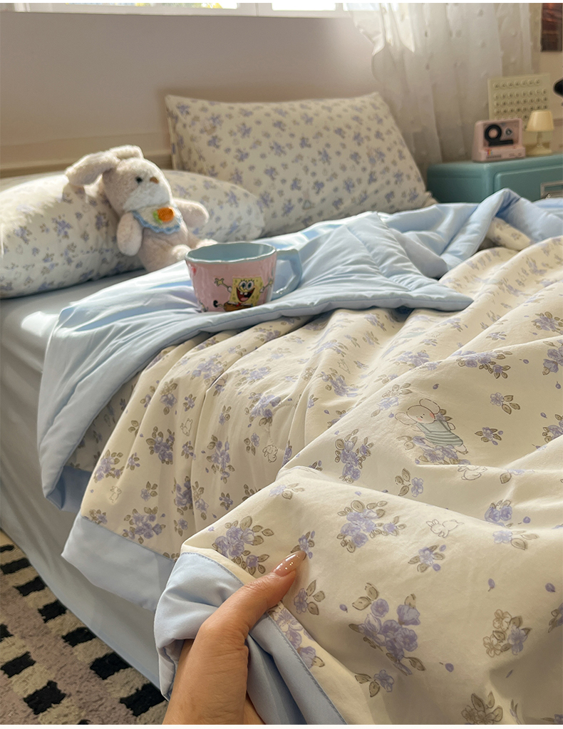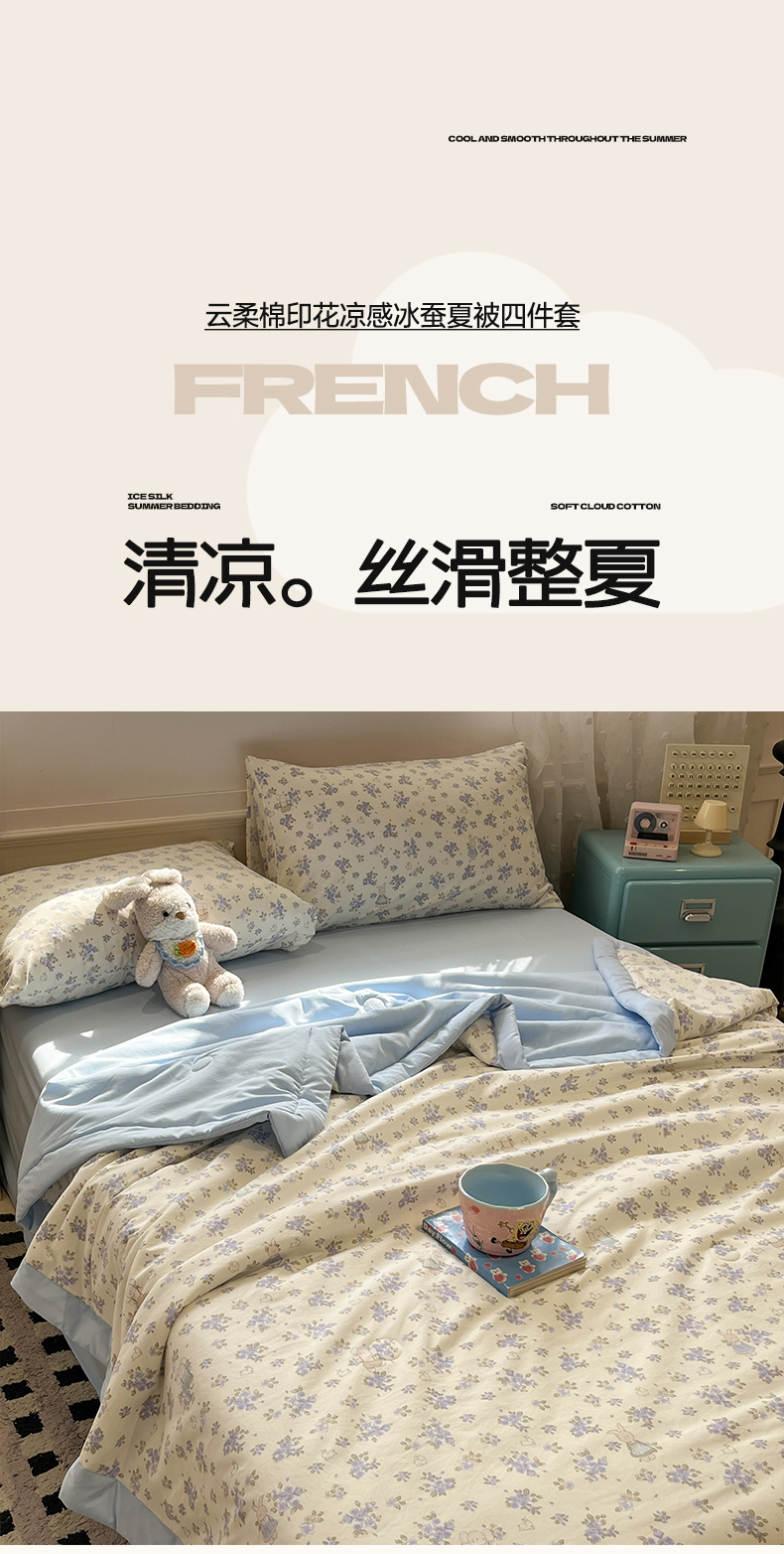 • 91家纺网 家纺一手货源 找家纺 一加一 2026新款云柔棉印花凉感冰蚕夏被夏凉被空调被四件套 花季