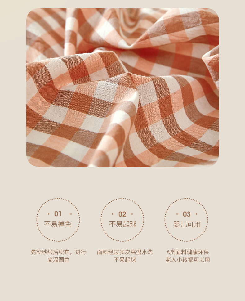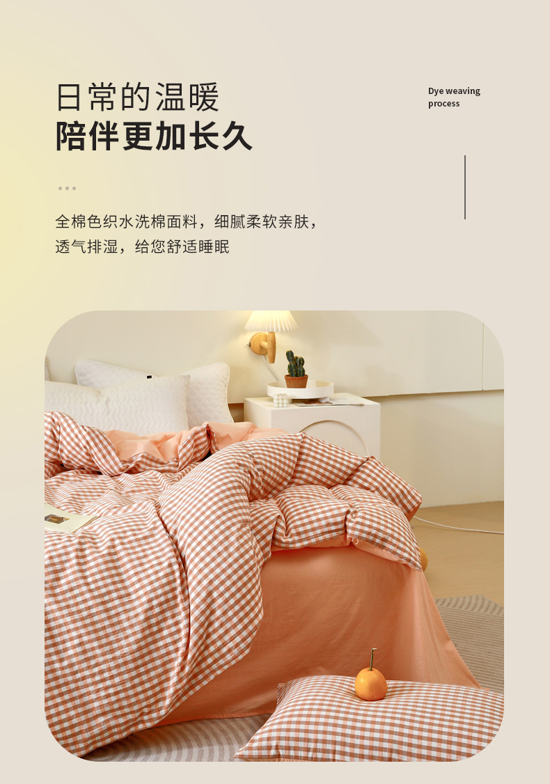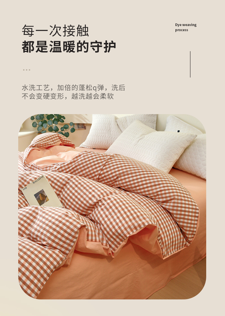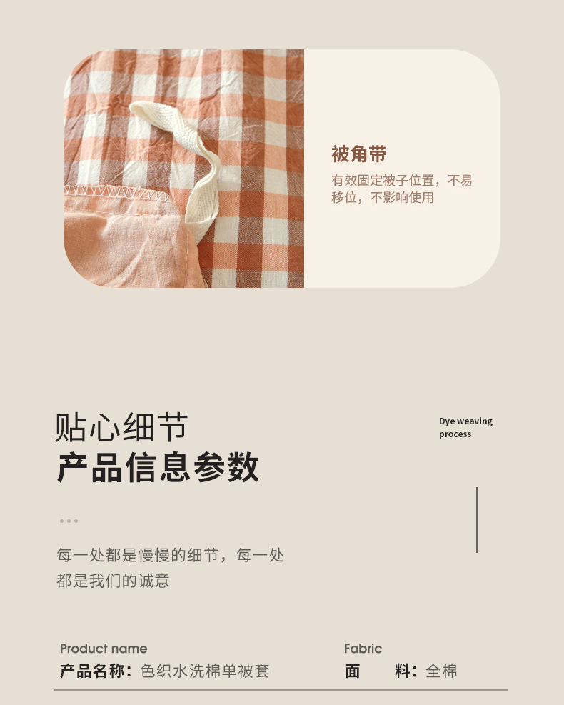 商品名称:春皖家纺 2026新款色织AB版水洗棉三件套四件套单品系列(单被套风格一) 素雅-玉格