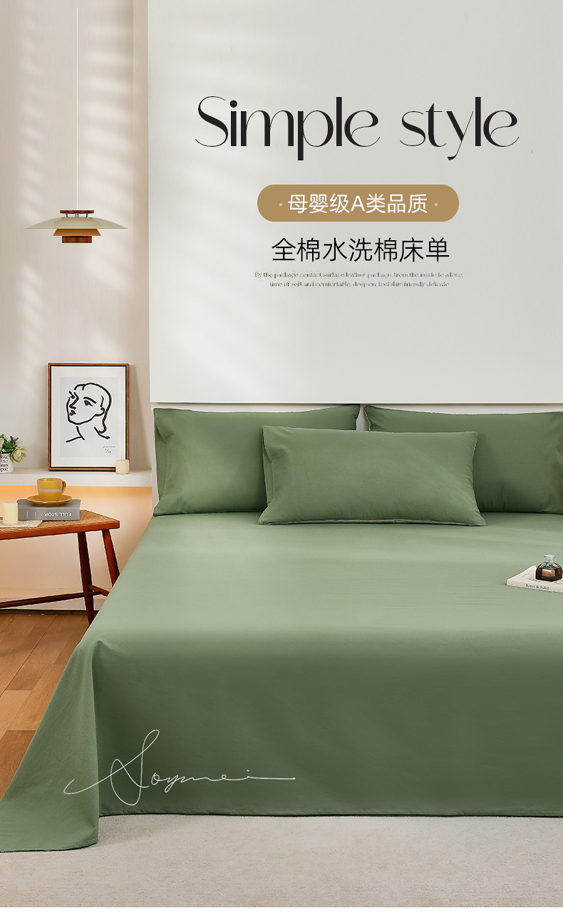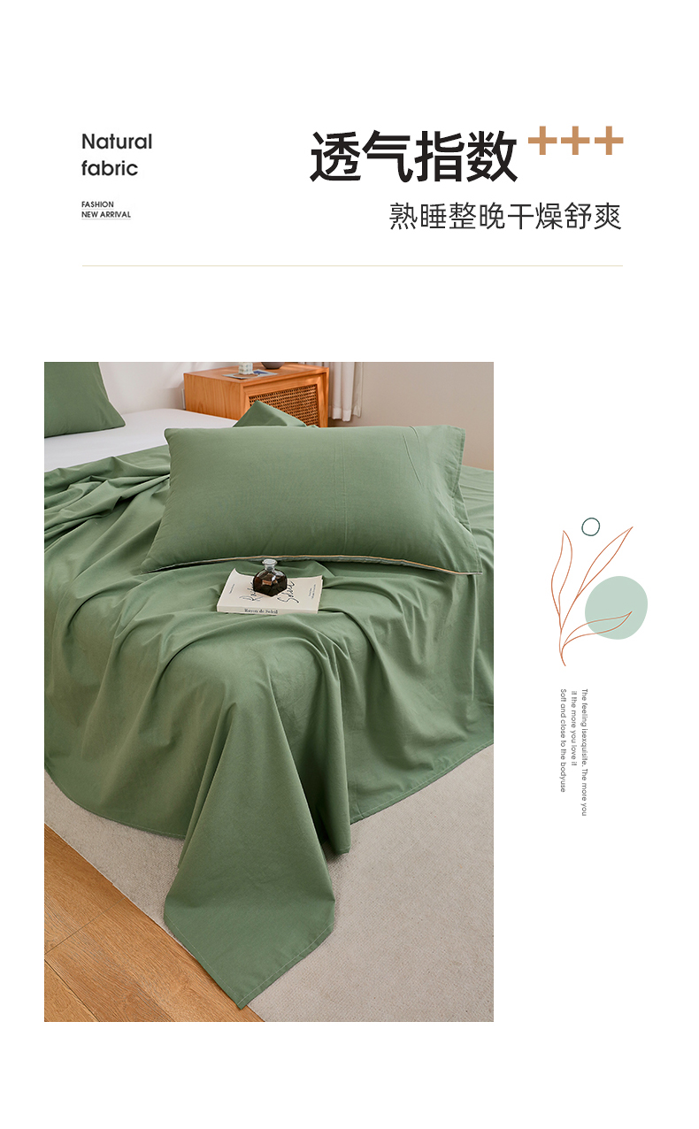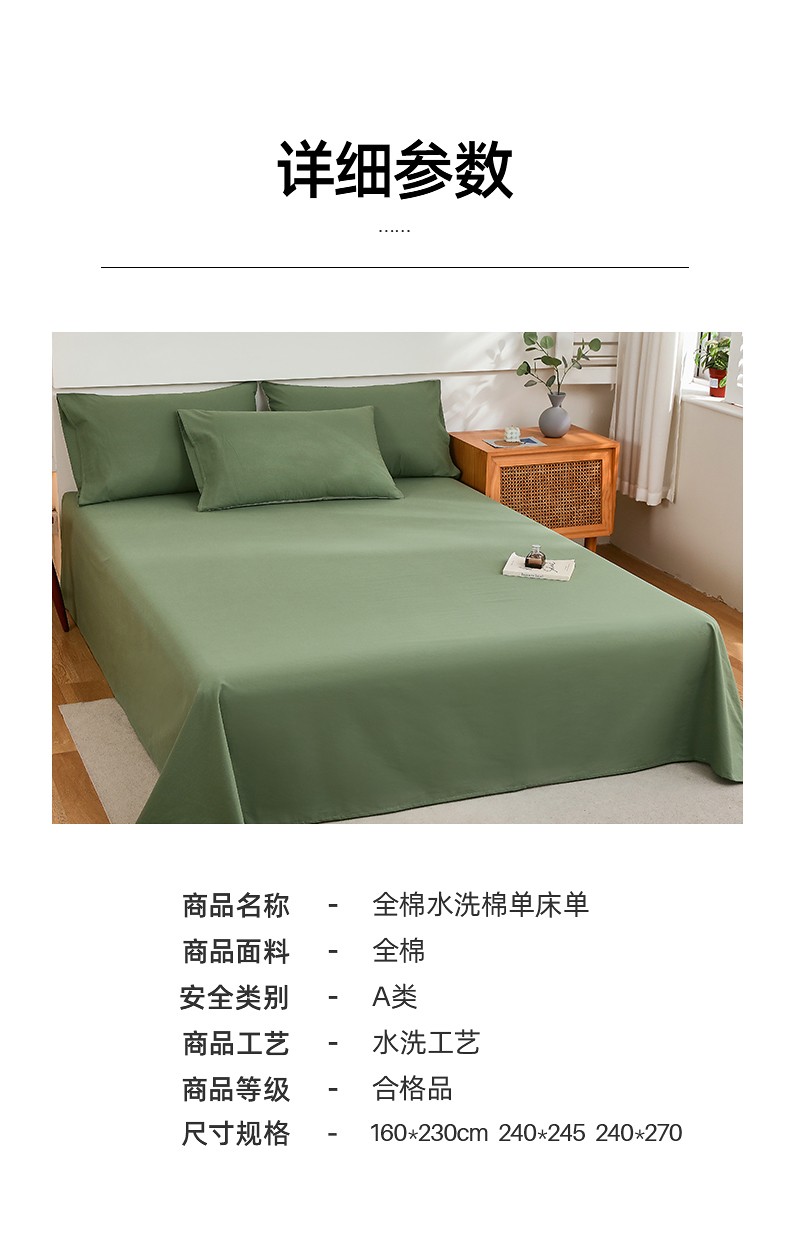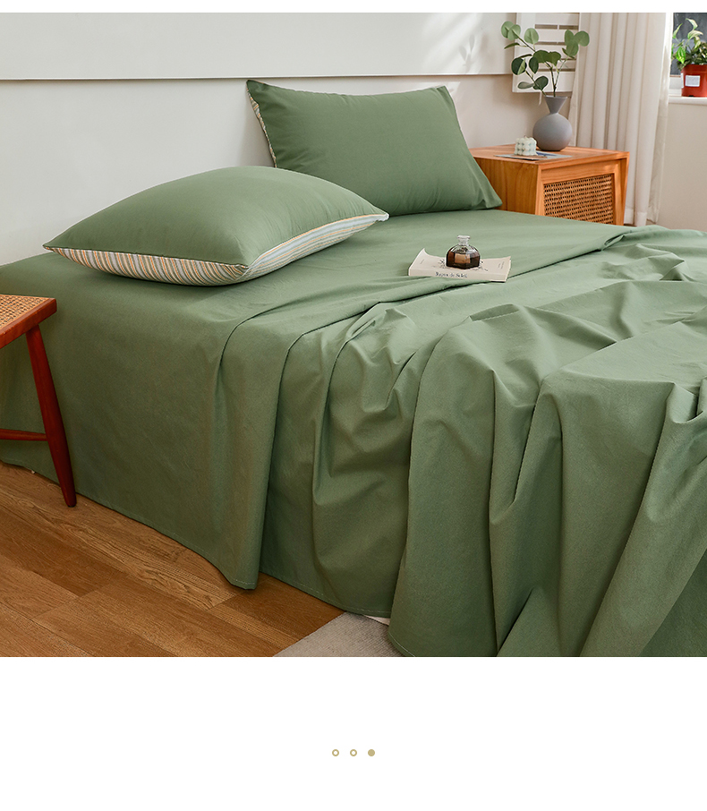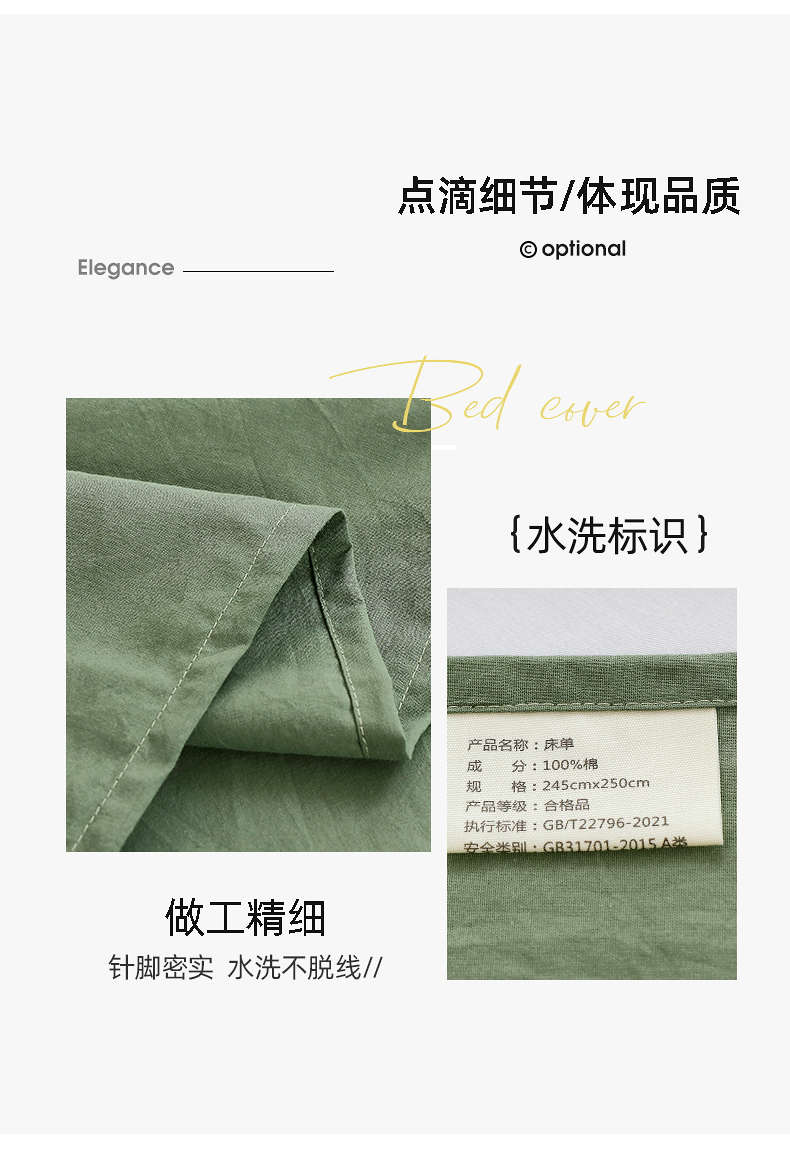 商品名称:春皖家纺 2026新款色织AB版水洗棉三件套四件套单品系列(单床单-B版风格一) 素雅军绿
