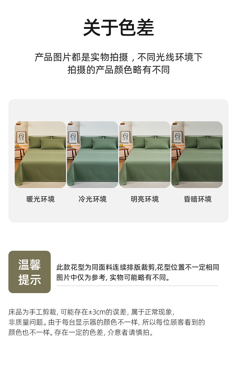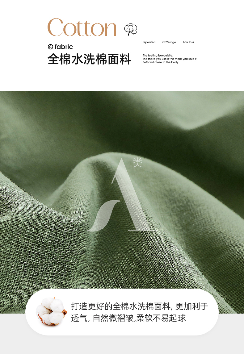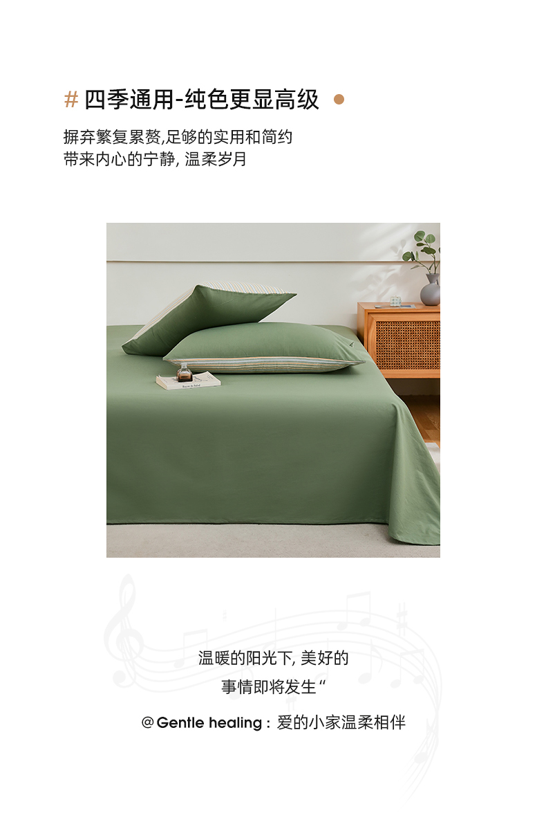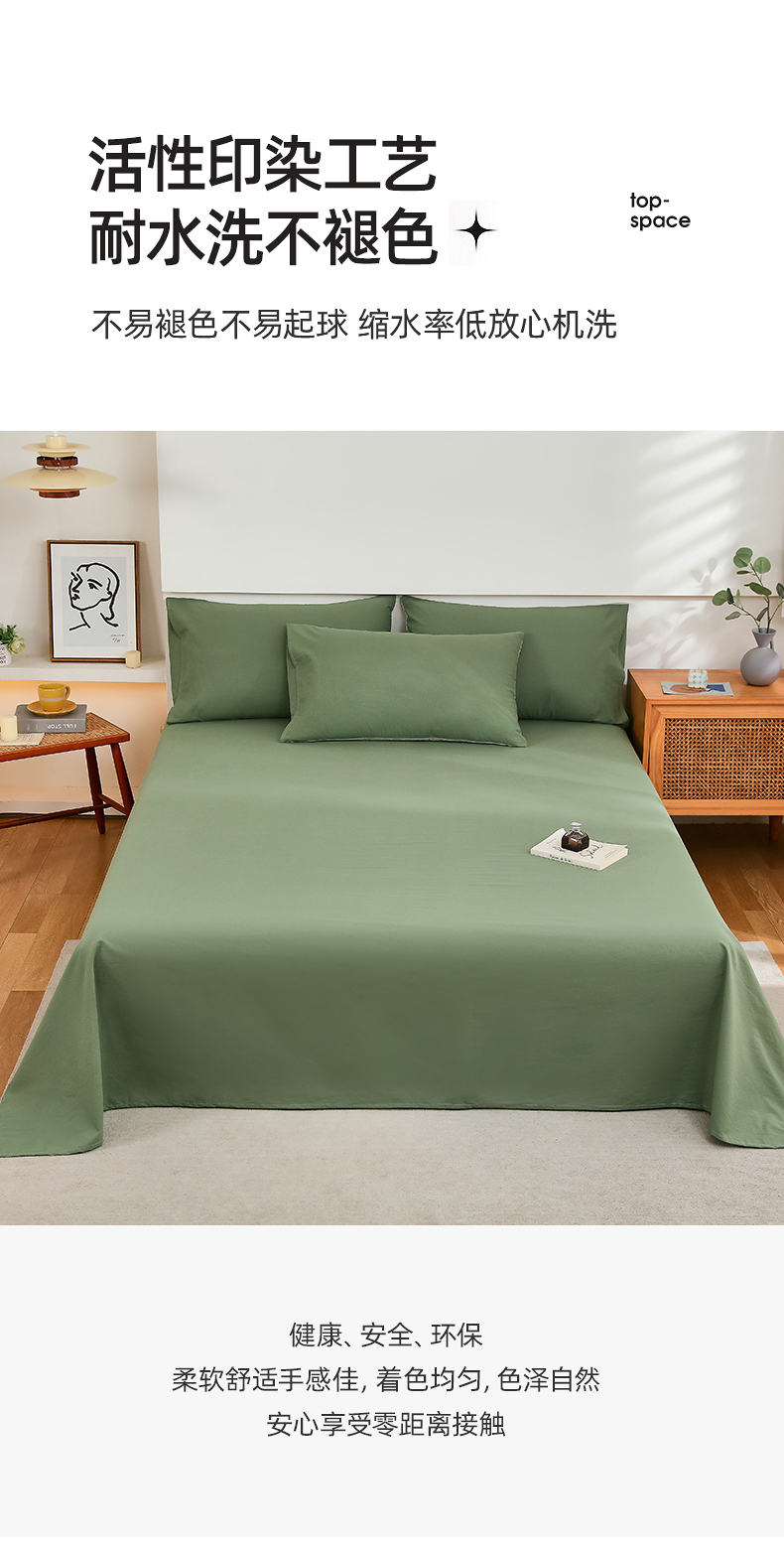 商品名称:春皖家纺 2026新款色织AB版水洗棉三件套四件套单品系列(单床单-B版风格一) 素雅军绿