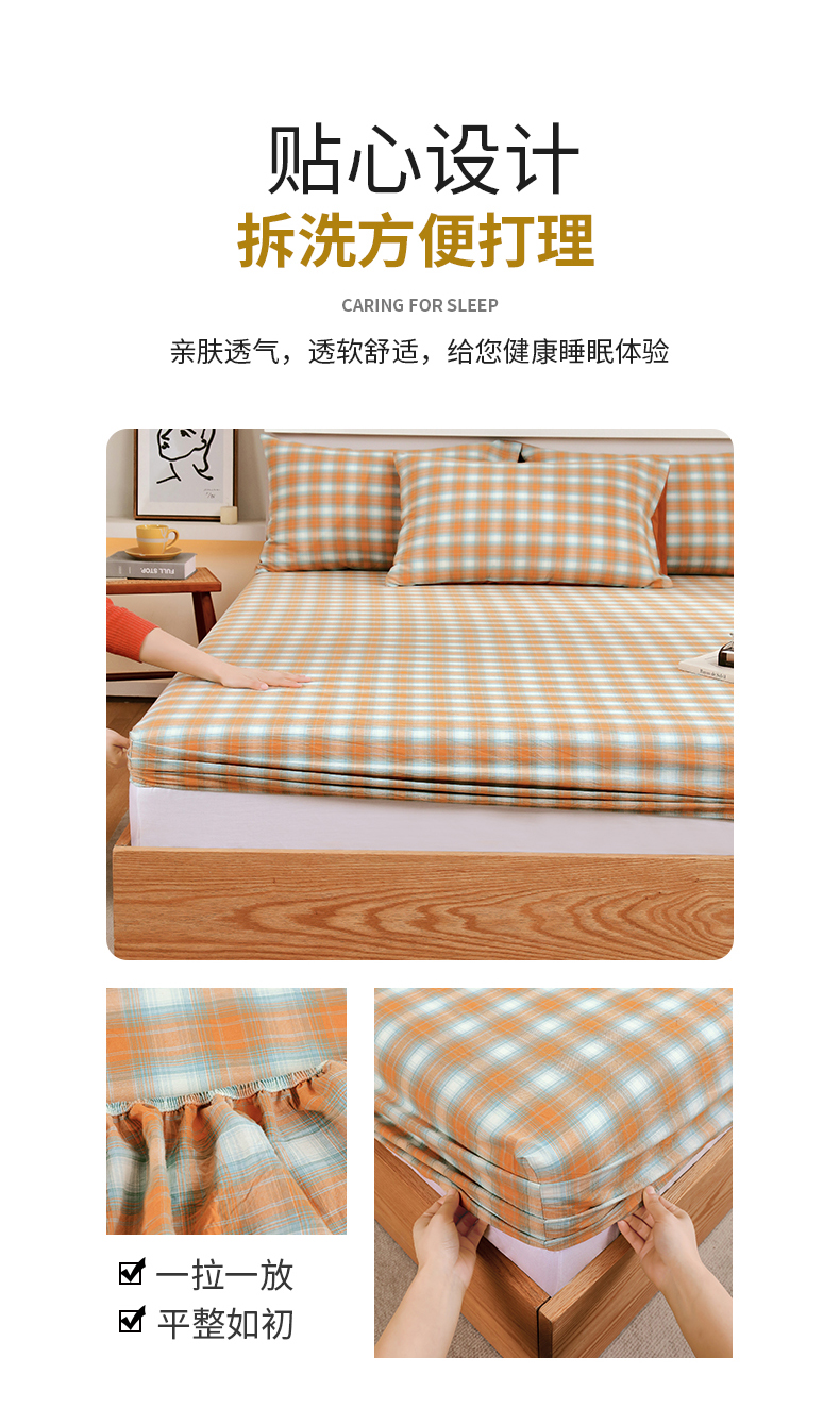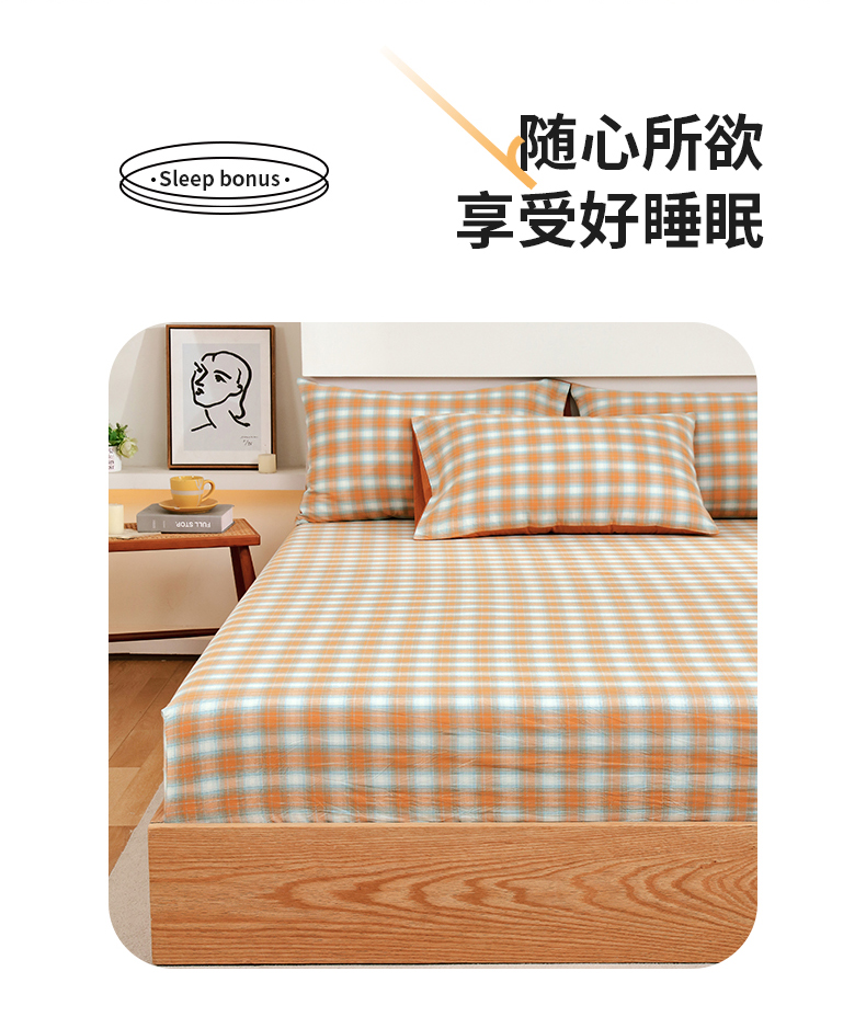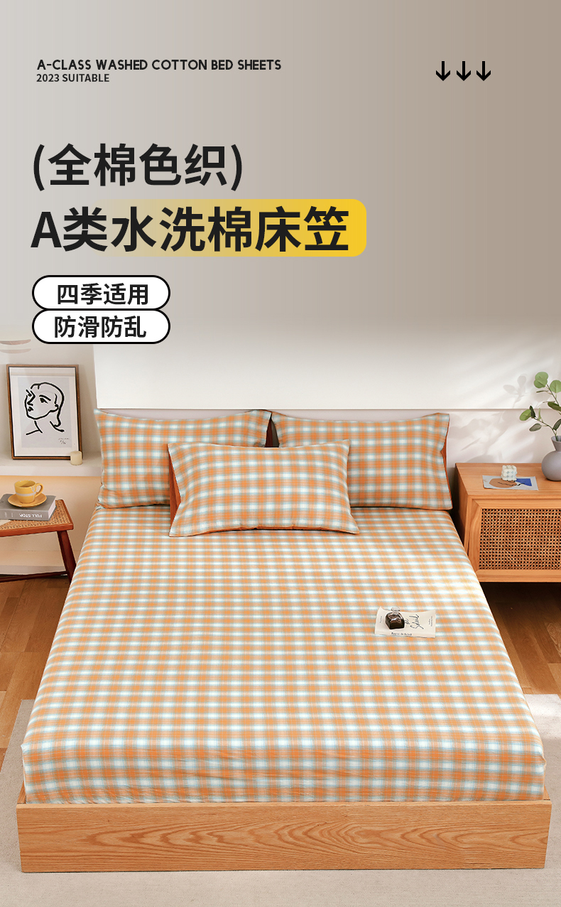 春皖家纺 2026新款色织AB版水洗棉三件套四件套单品系列(单床笠-A版风格一) 素雅-沐夏