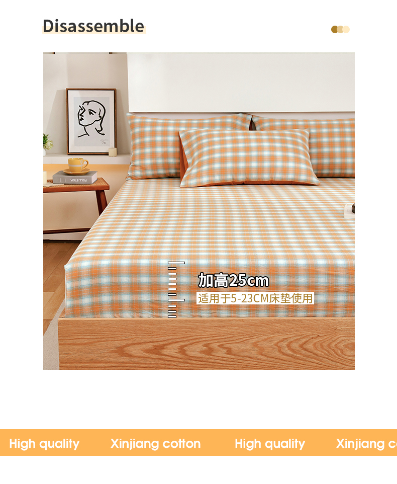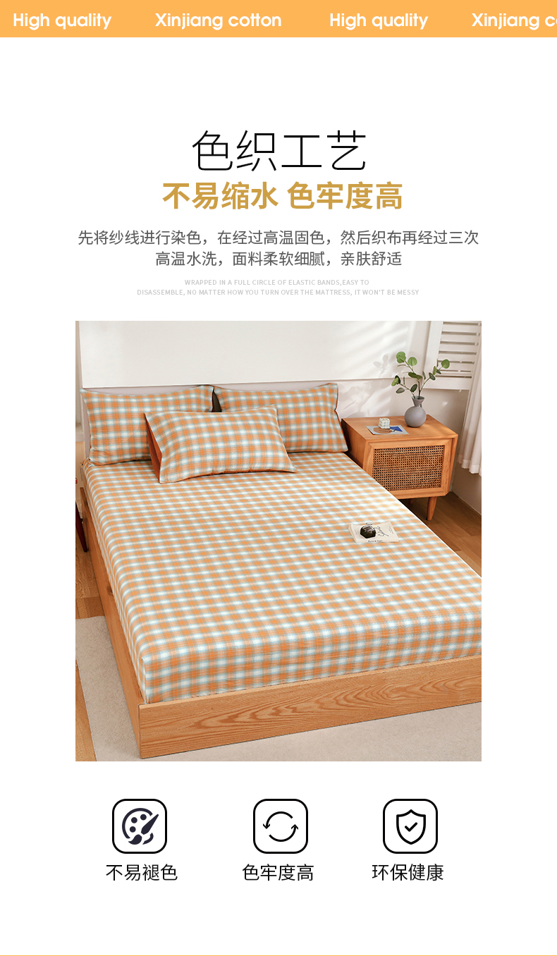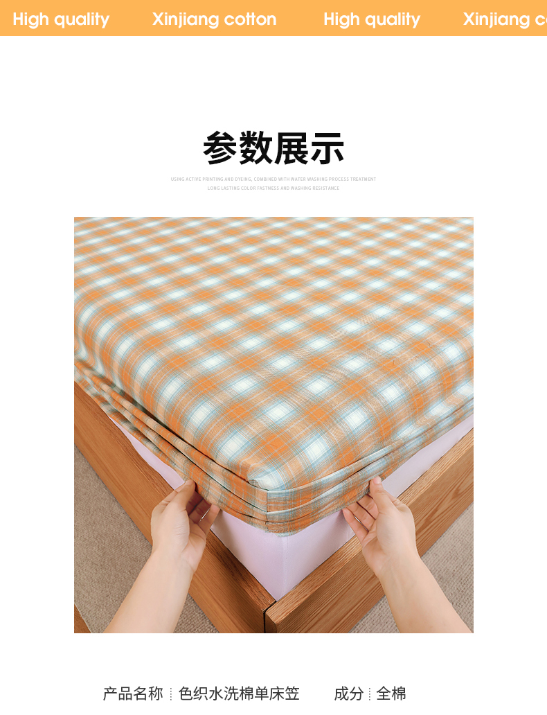 商品名称:春皖家纺 2026新款色织AB版水洗棉三件套四件套单品系列(单床笠-A版风格一) 素雅-沐夏