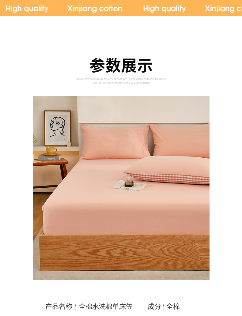 商品名称:春皖家纺 2026新款色织AB版水洗棉三件套四件套单品系列(单床笠-B版风格一) 素雅浅玉
