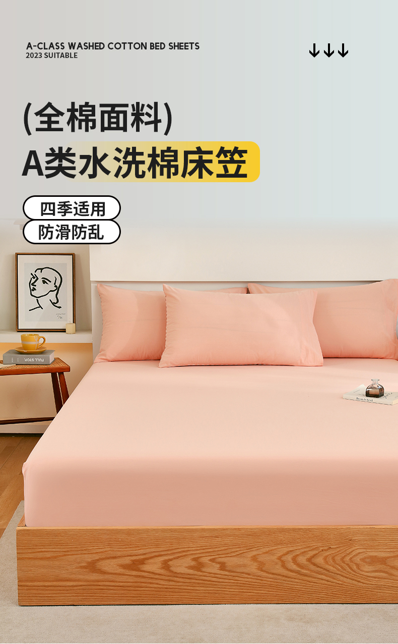 春皖家纺 2026新款色织AB版水洗棉三件套四件套单品系列(单床笠-B版风格一) 素雅浅玉