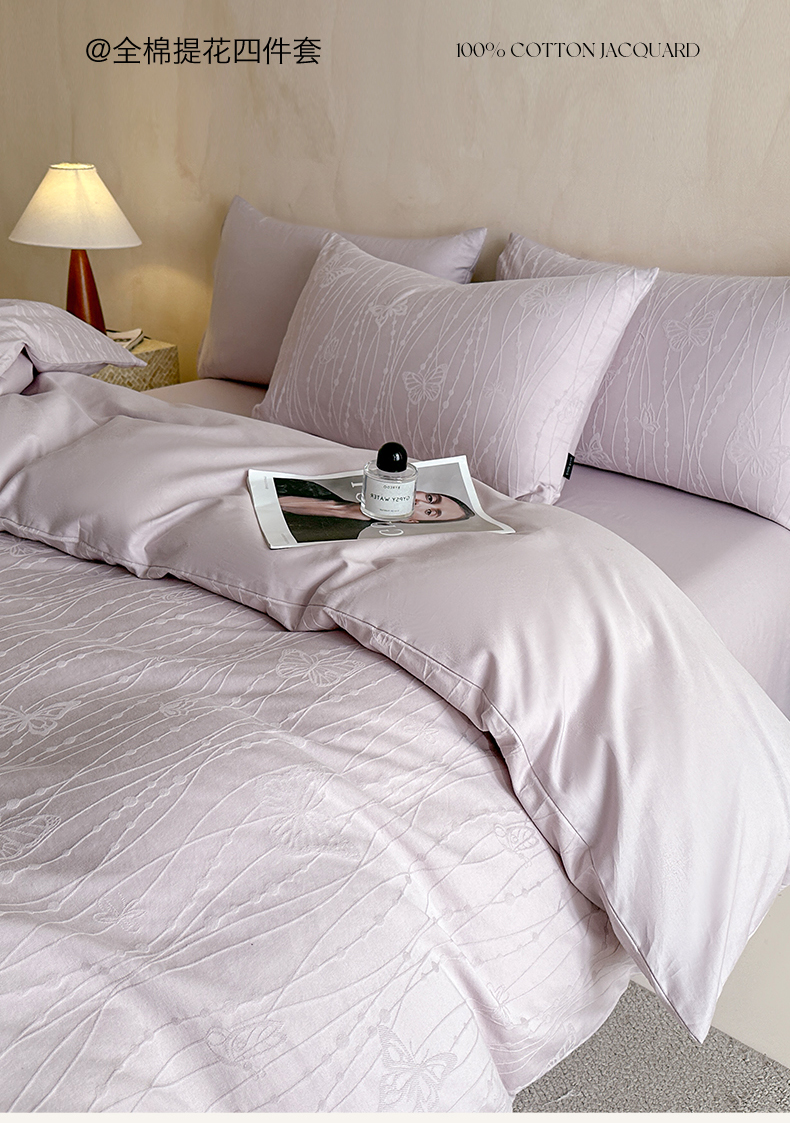 当前位置: 91家纺网 > 商品网购 > 床品套件 > 四件套 > 全棉普通四件套 > 恒爱家纺 2026春夏新款全棉纯棉提花四件套 千丝蝴蝶-紫