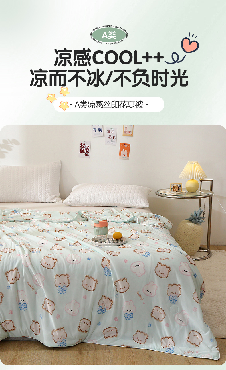 商品名称:薇玛仕 2026爆款新款印花凉感丝夏凉被空调被带氨自带凉感夏被 兔兔熊