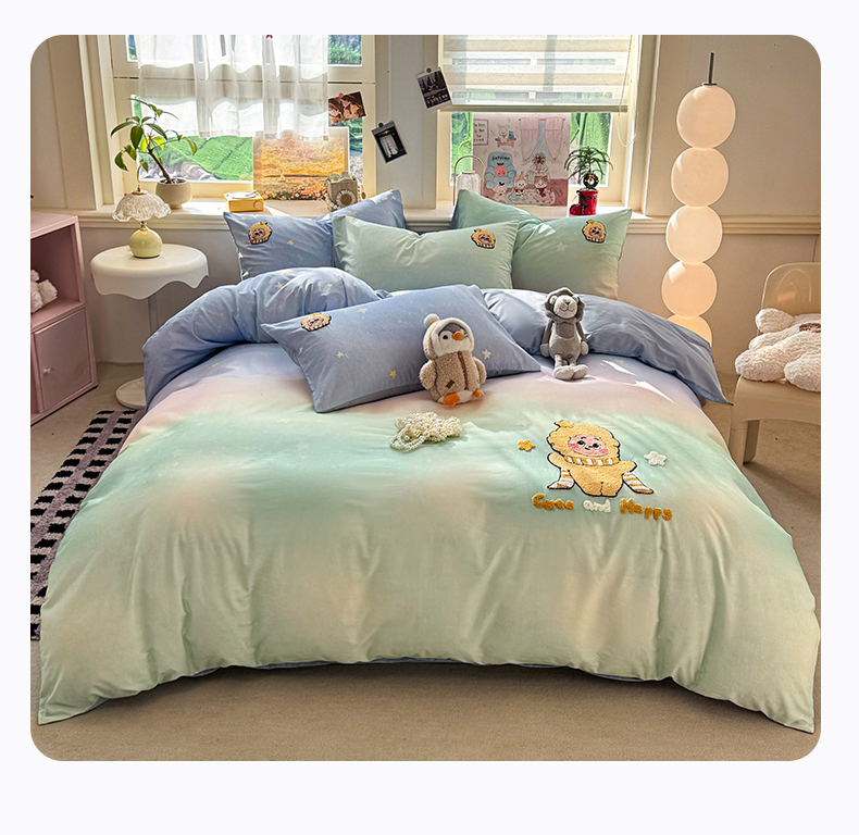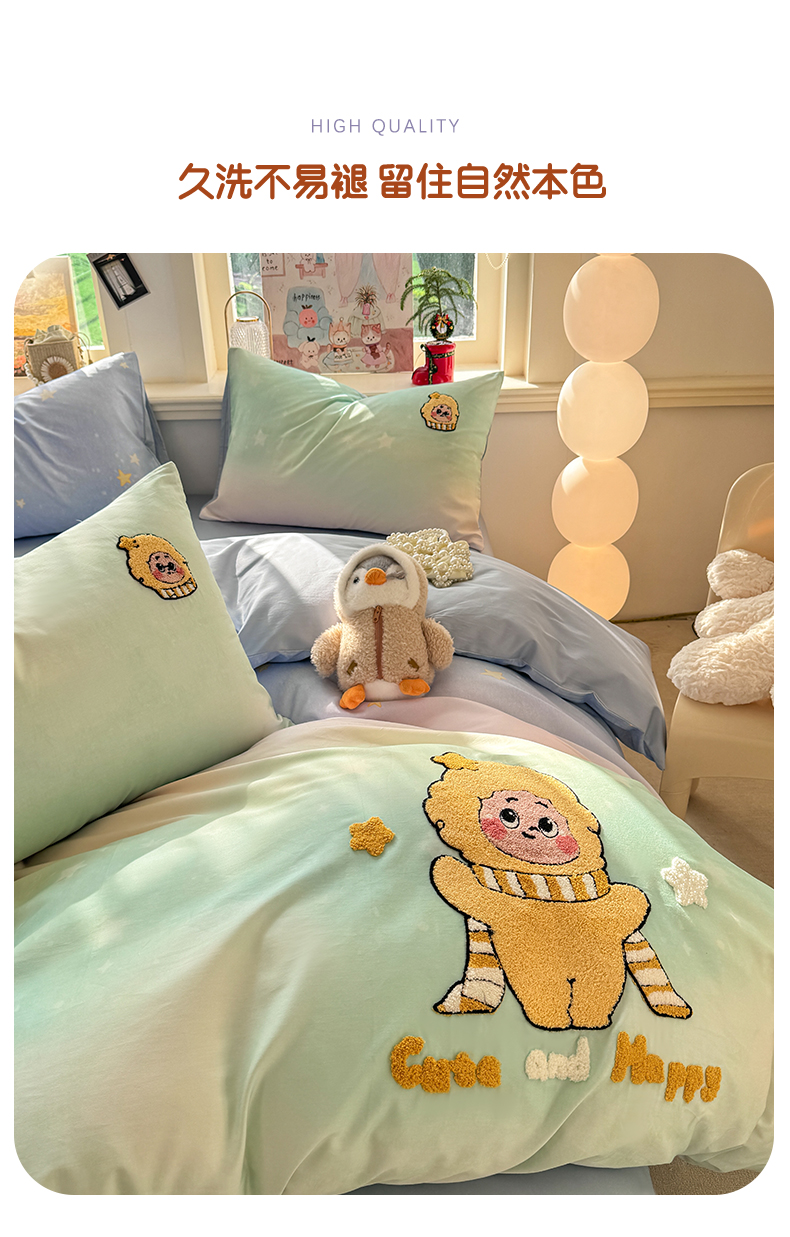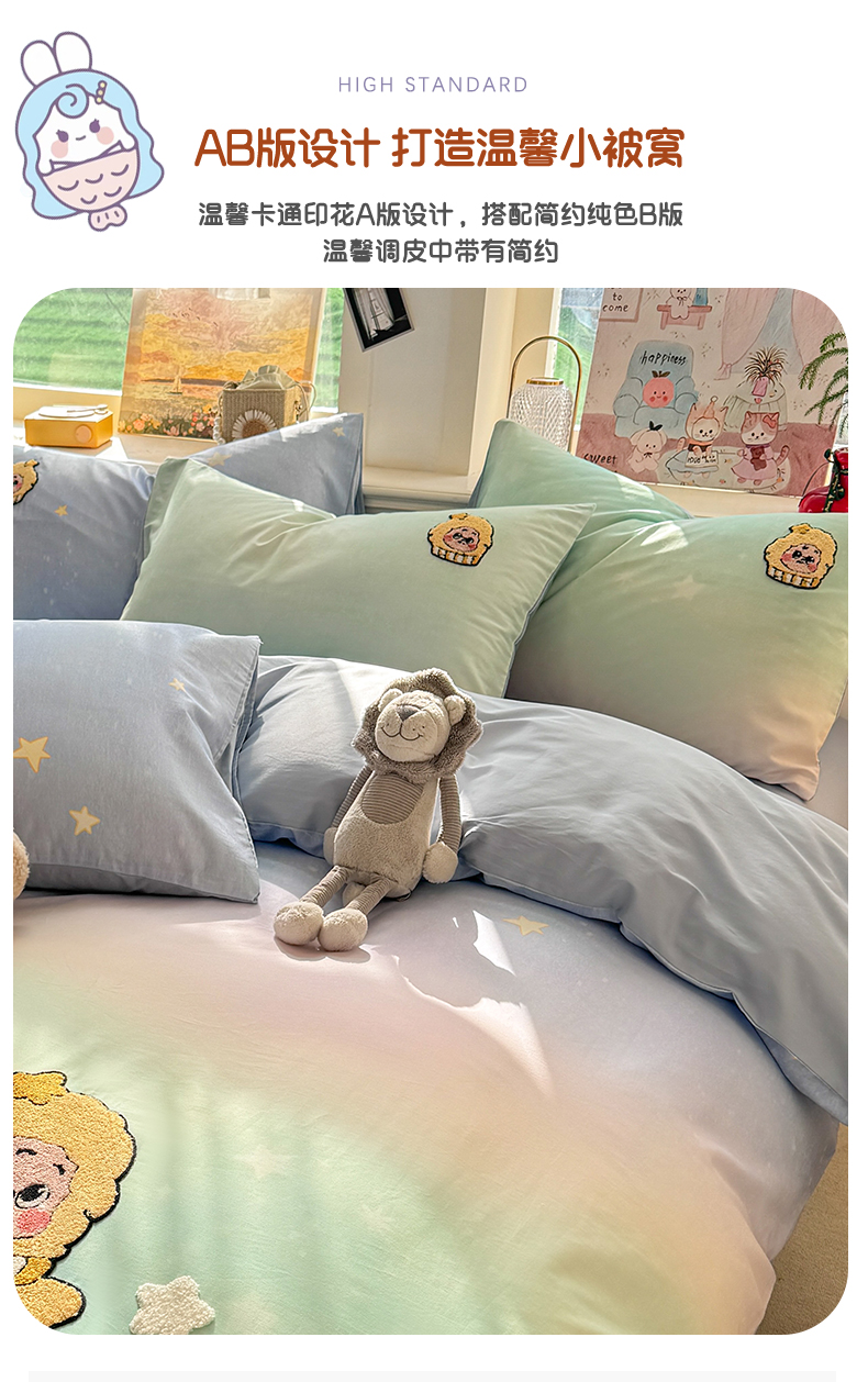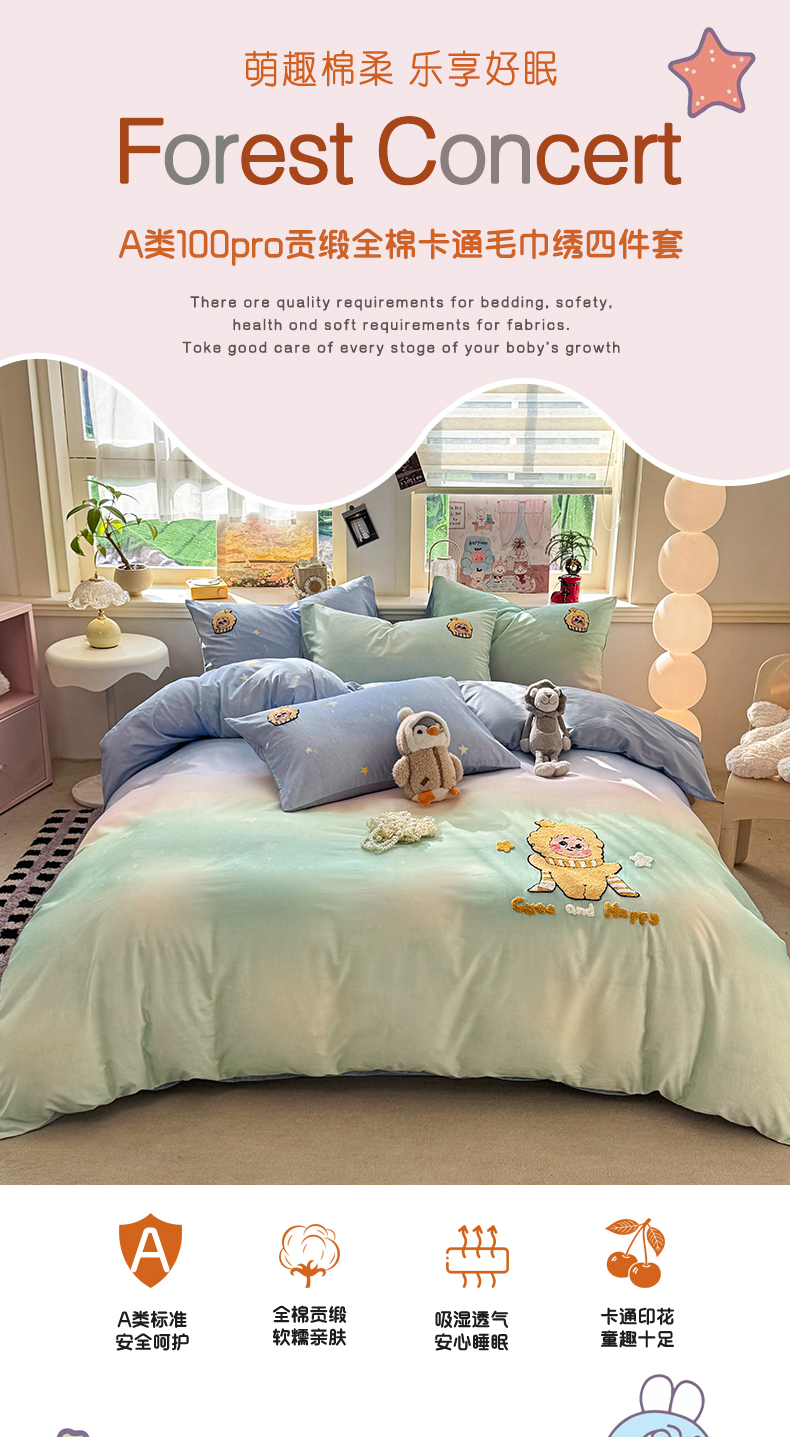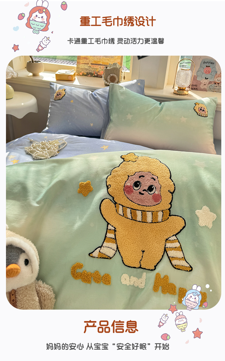 当前位置: 91家纺网 > 商品网购 > 床品套件 > 四件套 > 全棉普通四件套 > 卧趣家纺 2026新款A类100Pro贡缎全棉纯棉卡通毛巾绣四件套 小星星