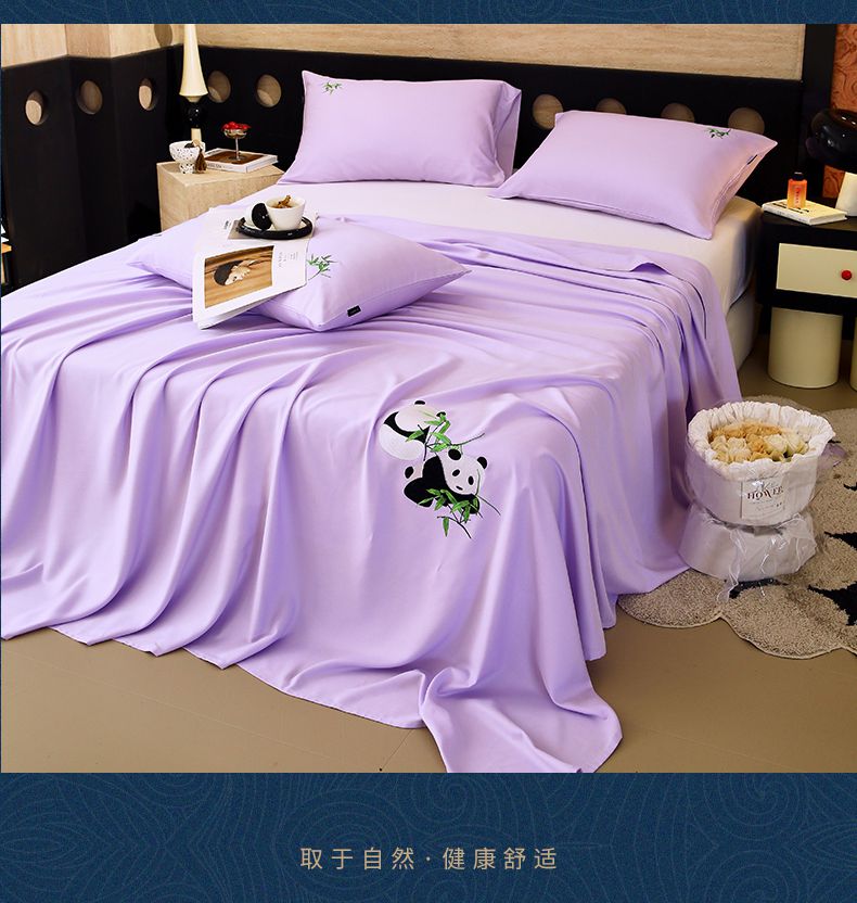 春皖家纺 2026新款A类竹纤维绣花床单凉席系列-风格1 霞光紫