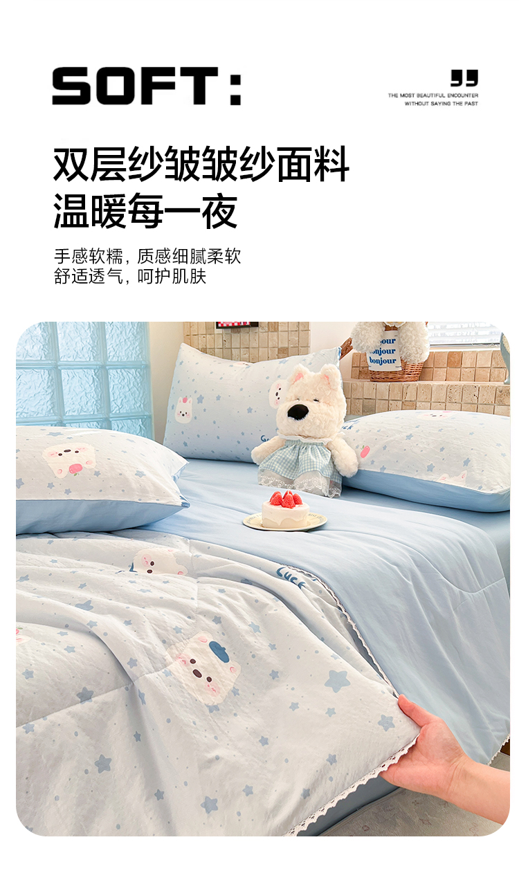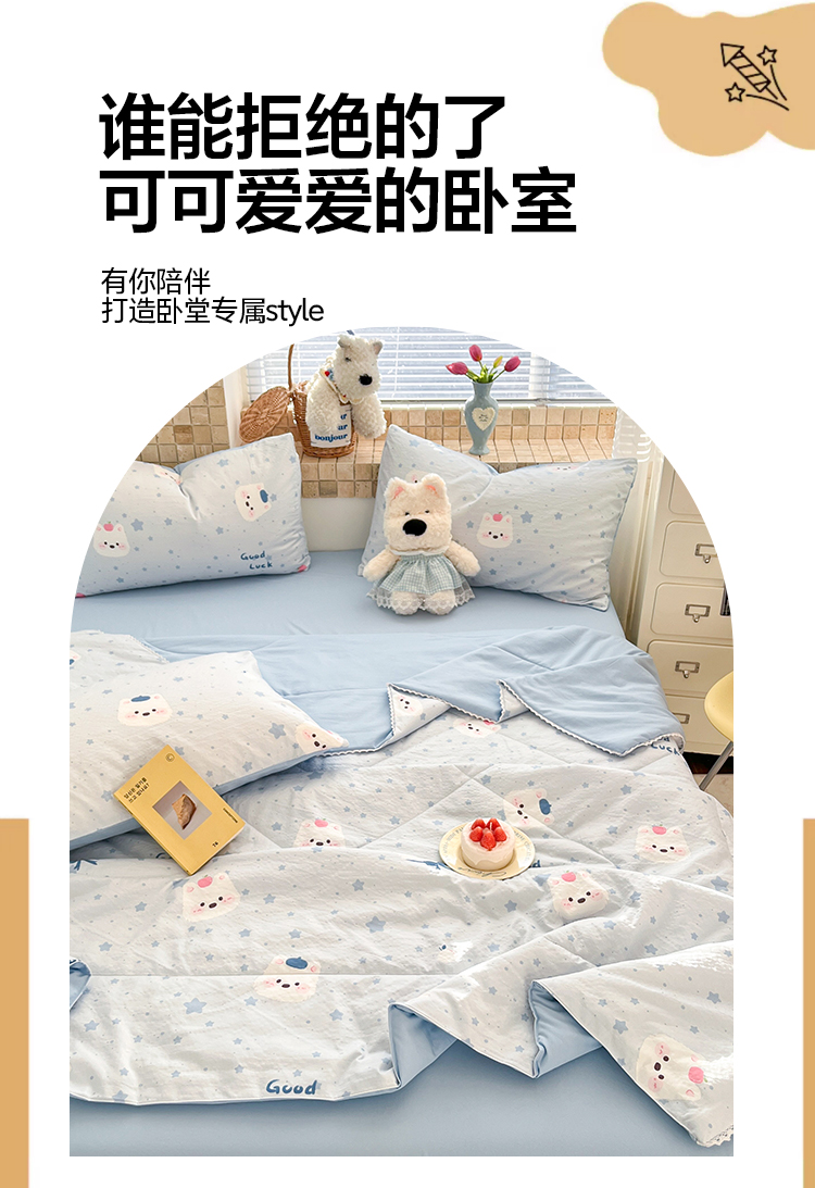 (总)川悦生活 2026新款双层纱木棉夏被四件套,星星西高地,嘟嘟花园,海盐小咪,花都小狗,花田乐园,花艺喵喵,可乐腊肠,腊肠甜心,腊肠庄园,奶油糕糕喵,奶油可盐,汽水小咪,恰星星,巧克力乐园,数星星,糖豆小旺,甜梦心愿,西斯花圃,香芋甜梦,小猫庄园,杏仁小星星,组合图