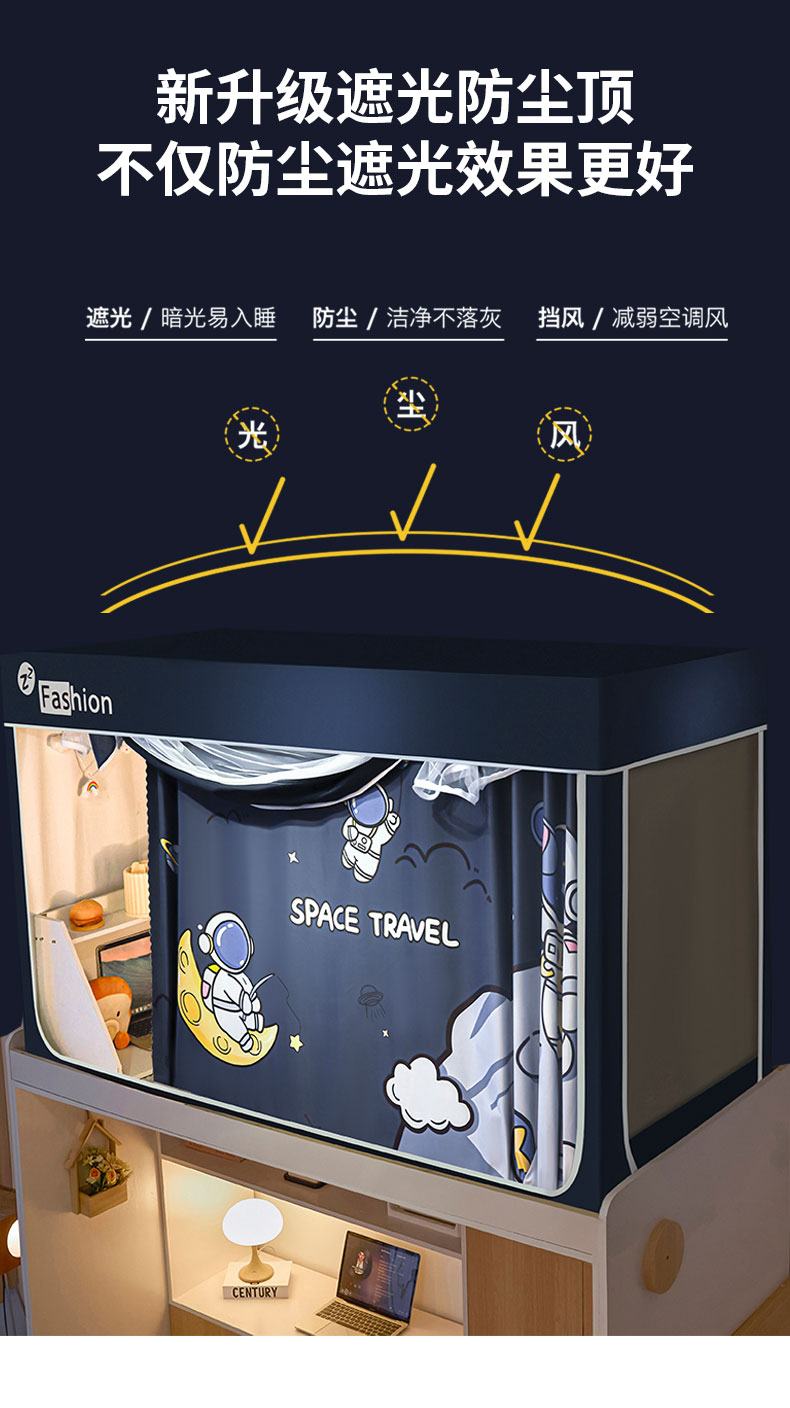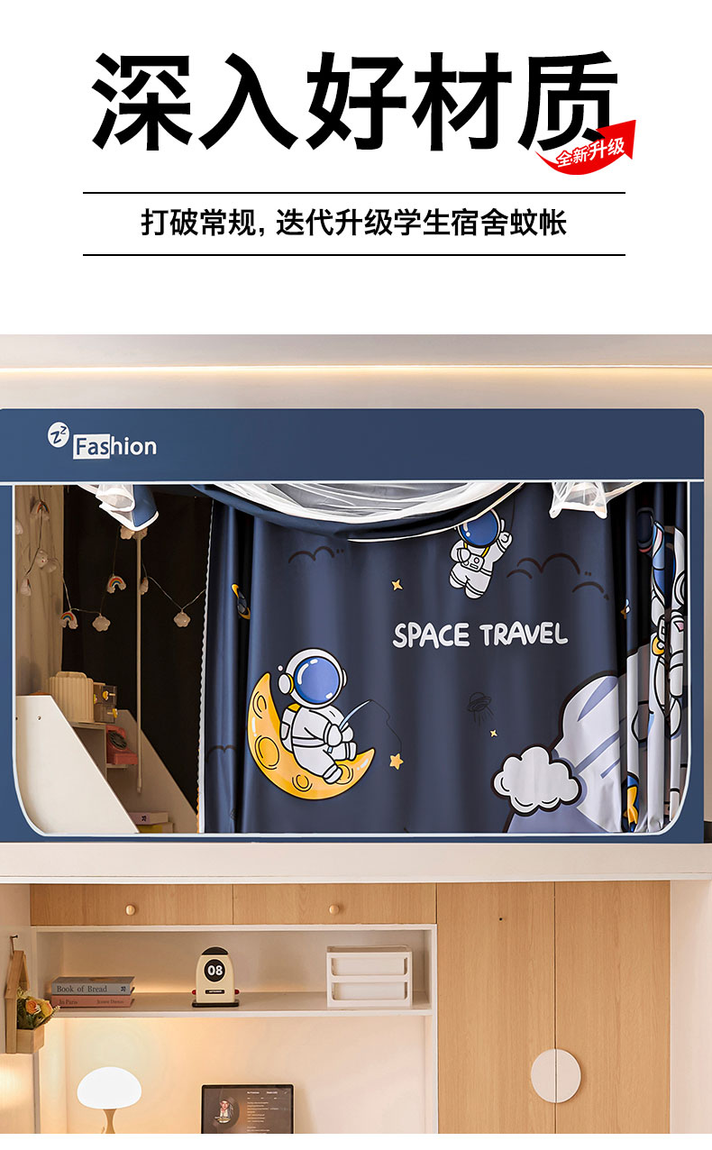 当前位置: 91家纺网 > 商品网购 > 床上用品 > 蚊帐 > 学生蚊帐 > 壹和 2026新款强遮光纳米技术静电植绒环保透气床帘加密纱学生蚊帐 星球探索