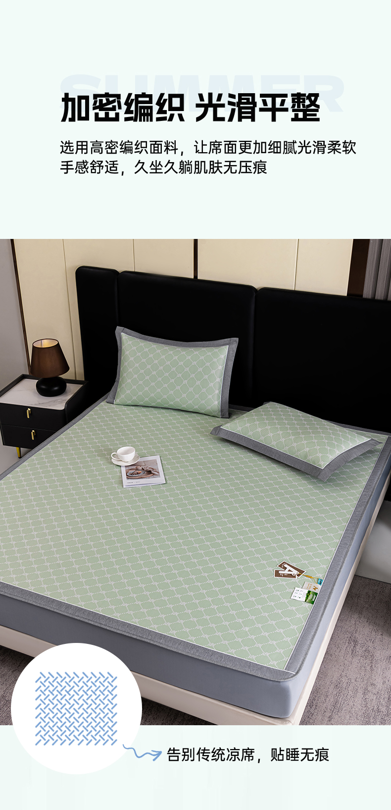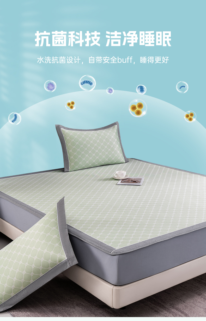 (总)2023新款超精密冰丝席-小斜纹系列-床笠款藤席凉席竹席,粉色,蓝色,绿色,银灰