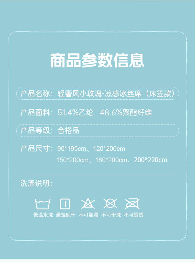 商品名称:(总)小牛席业 2026新款轻奢风提花凉感冰丝席系列(床笠款)小玫瑰凉席藤席冰藤双面席冰丝席竹席凉席空调席草席三件套