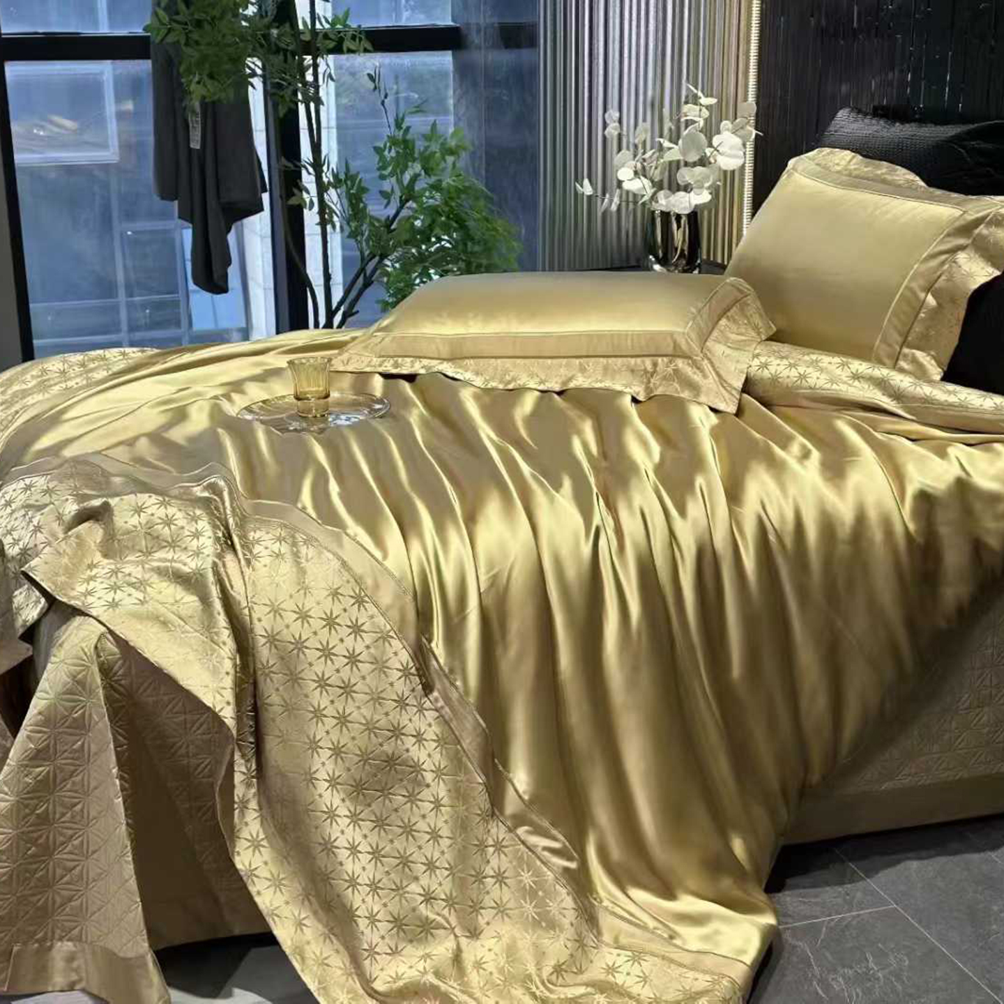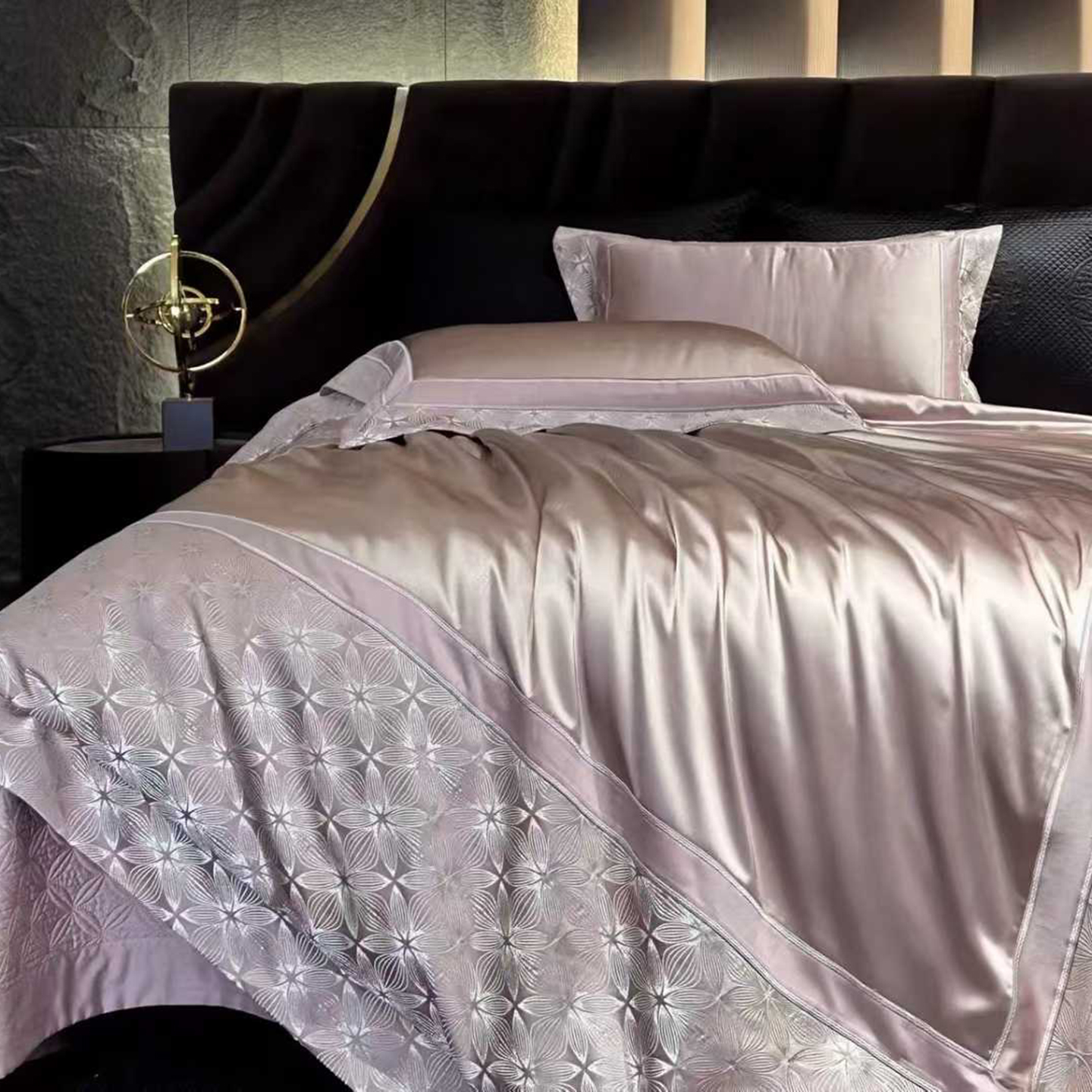 (总)edra 2026新款真丝天丝轻奢提花床盖款四件套-繁花,繁花-深灰,繁花-银灰