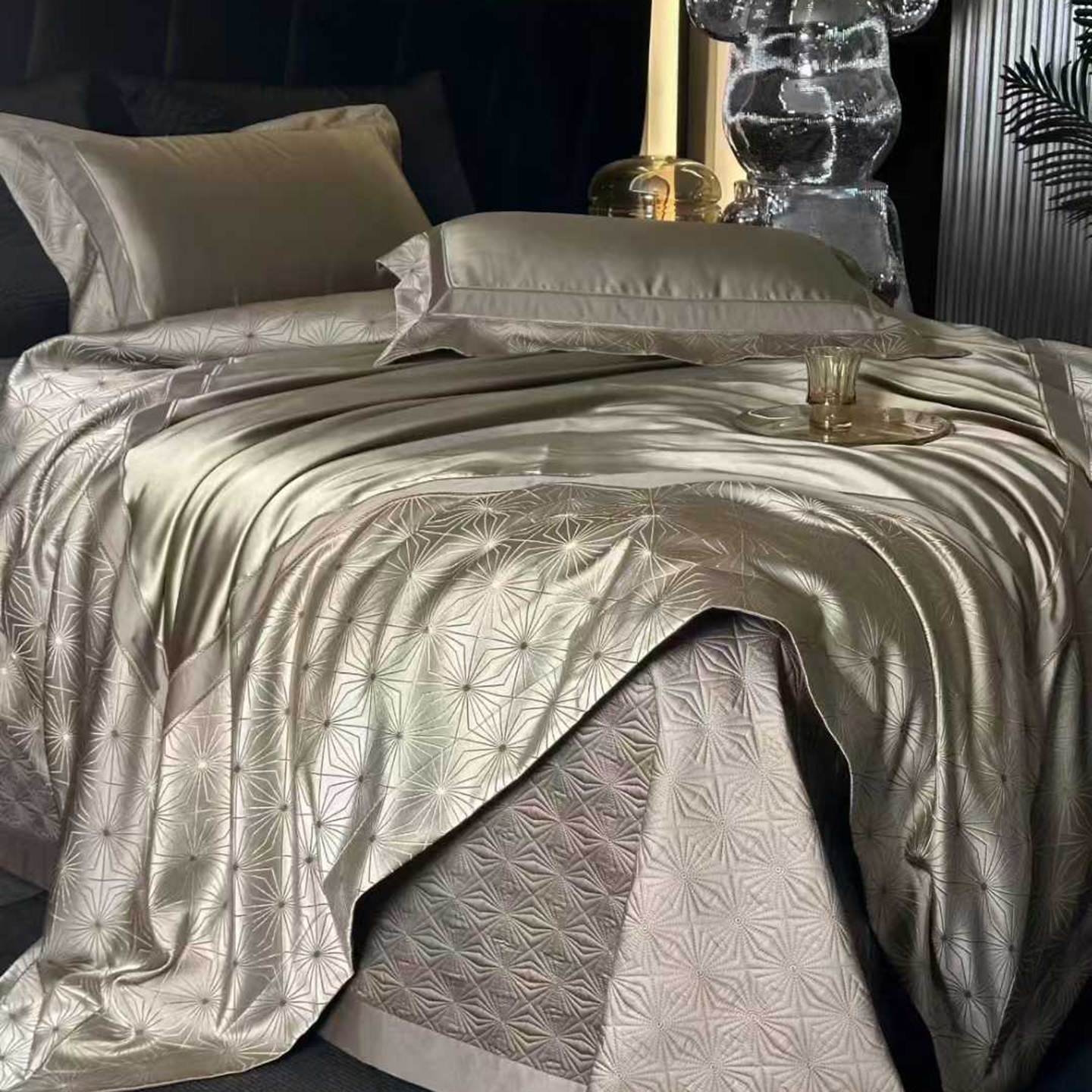 (总)edra 2026新款真丝天丝轻奢提花床盖款四件套-拉斐尔,香槟白,粉,银灰,金咖,蓝