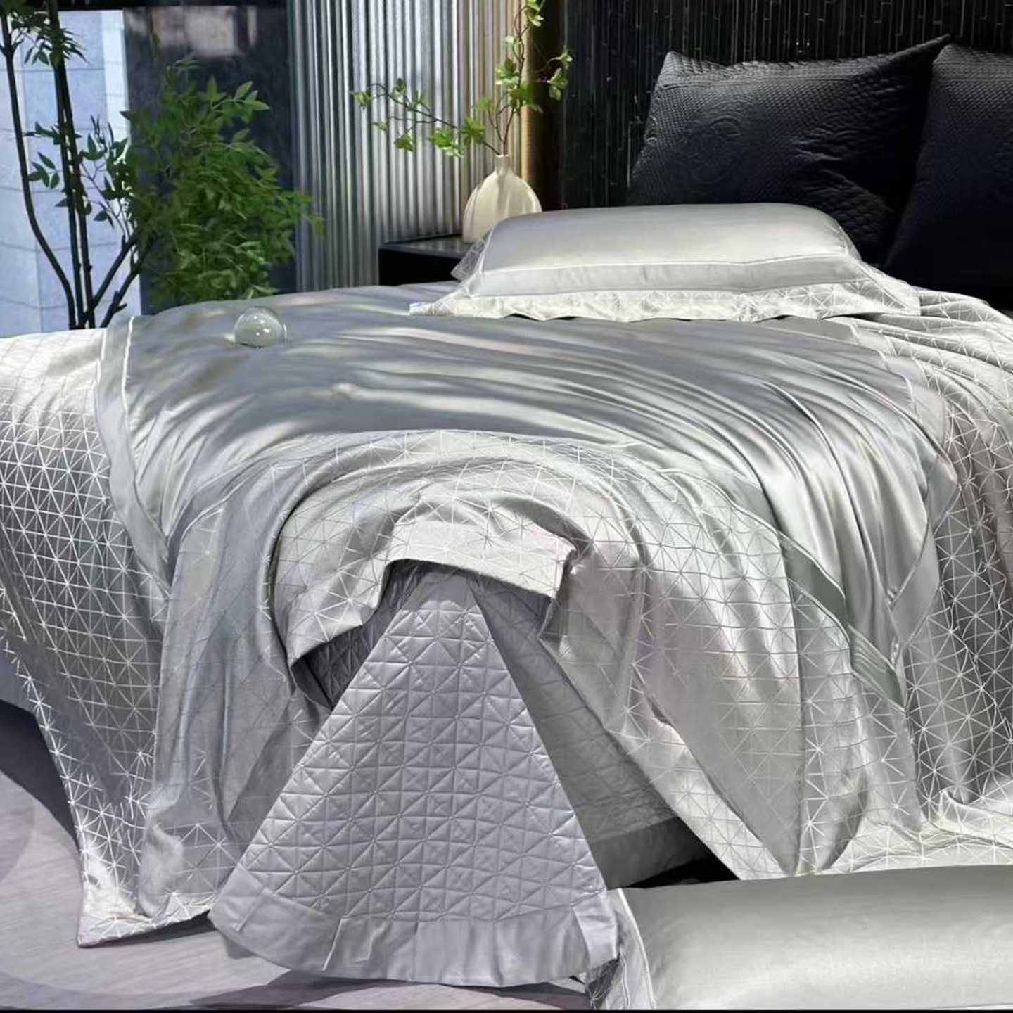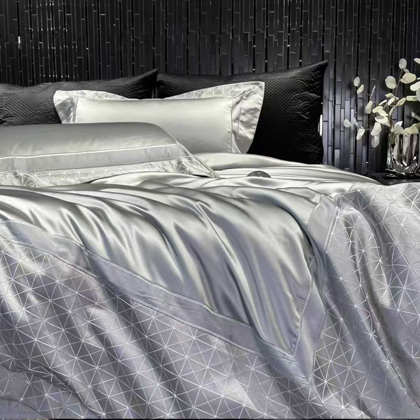 商品名称:edra 2026新款真丝天丝轻奢软浮雕床盖款四件套-真丝浮雕 真丝浮雕-银灰