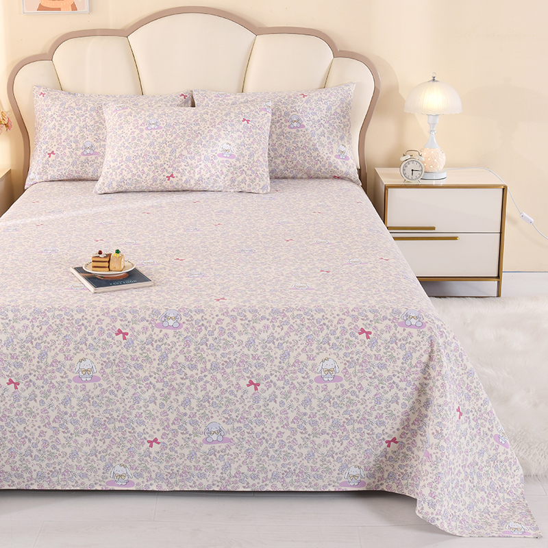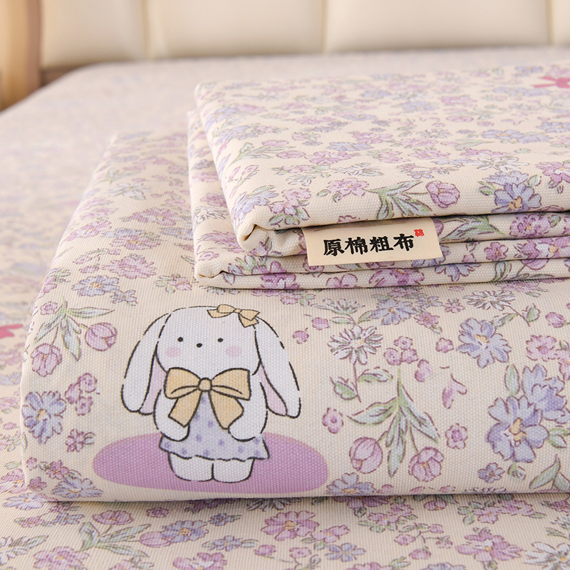 • 91家纺网 家纺一手货源 找家纺 2026新款细纱老粗布床单床笠凉席席子三件套 花园小兔