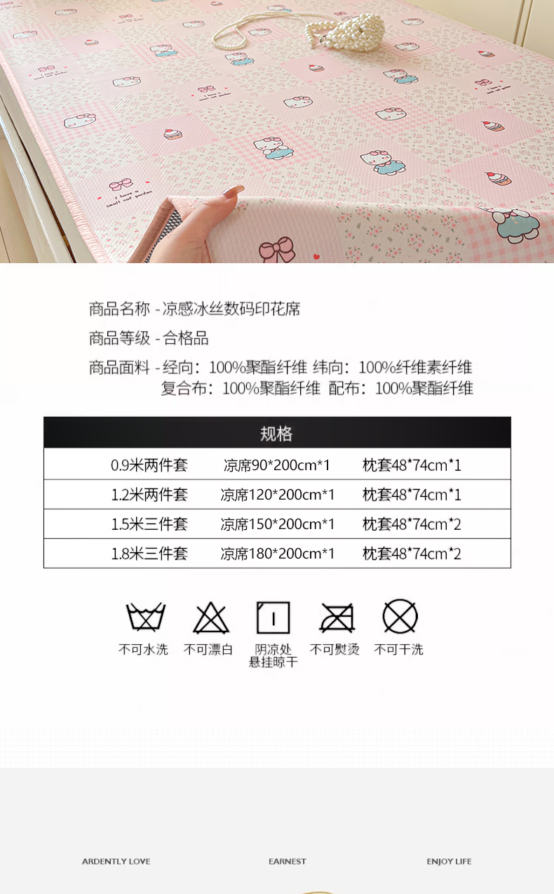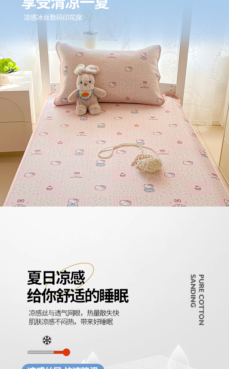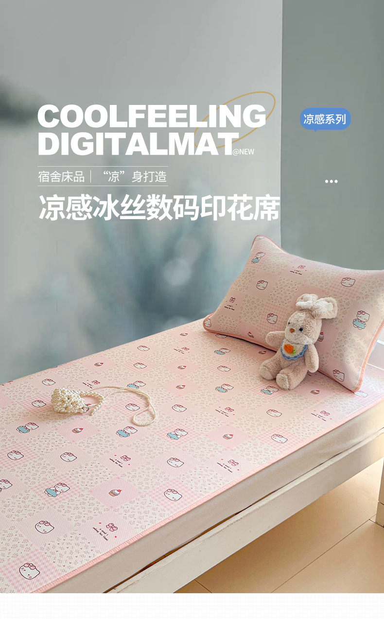 当前位置: 91家纺网 > 商品网购 > 床上用品 > 凉席 > 川悦生活 2026新款凉感冰丝席小阪凉感冰丝数码印花席学生床 席奶油糕糕喵
