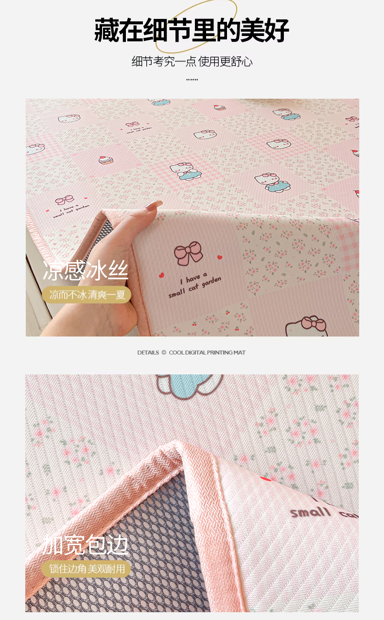 • 91家纺网 家纺一手货源 找家纺 川悦生活 2026新款凉感冰丝席小阪凉感冰丝数码印花席学生床 席奶油糕糕喵