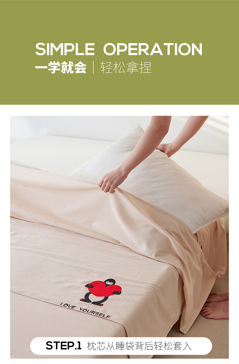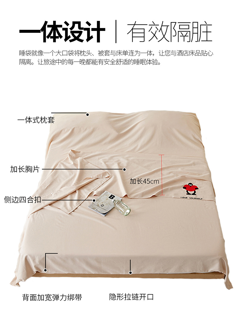 商品名称:沐珩家纺 2026新款糯感全棉定制正版卡通绣花大雁纹旅行酒店隔脏睡袋 情侣兔
