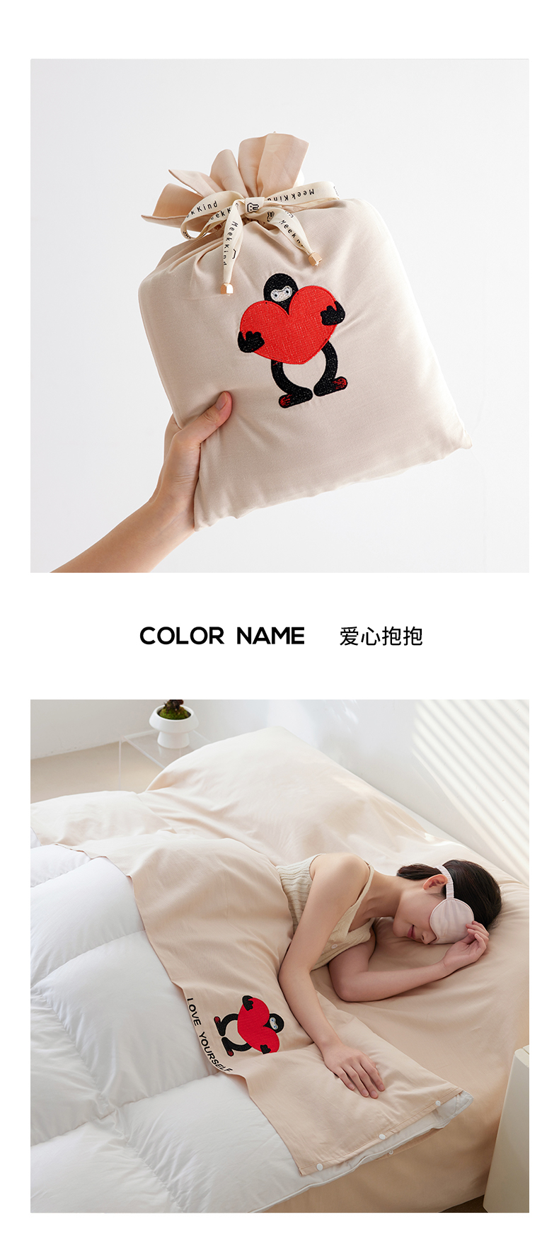 (总)沐珩家纺 2026新款糯感全棉定制正版卡通绣花大雁纹旅行酒店隔脏睡袋,小熊猫,爱心抱抱,蓝色小象,蜜桃小兔,南极企鹅,情侣兔,熊猫果赖,熊猫花花