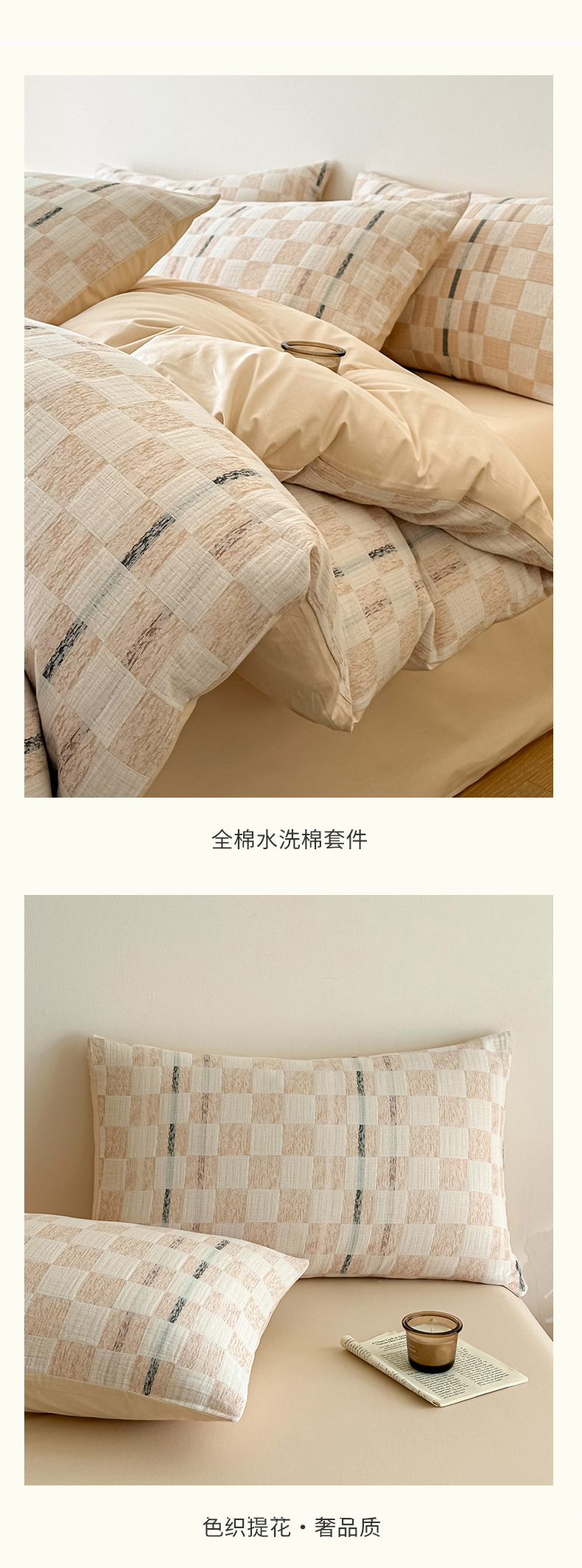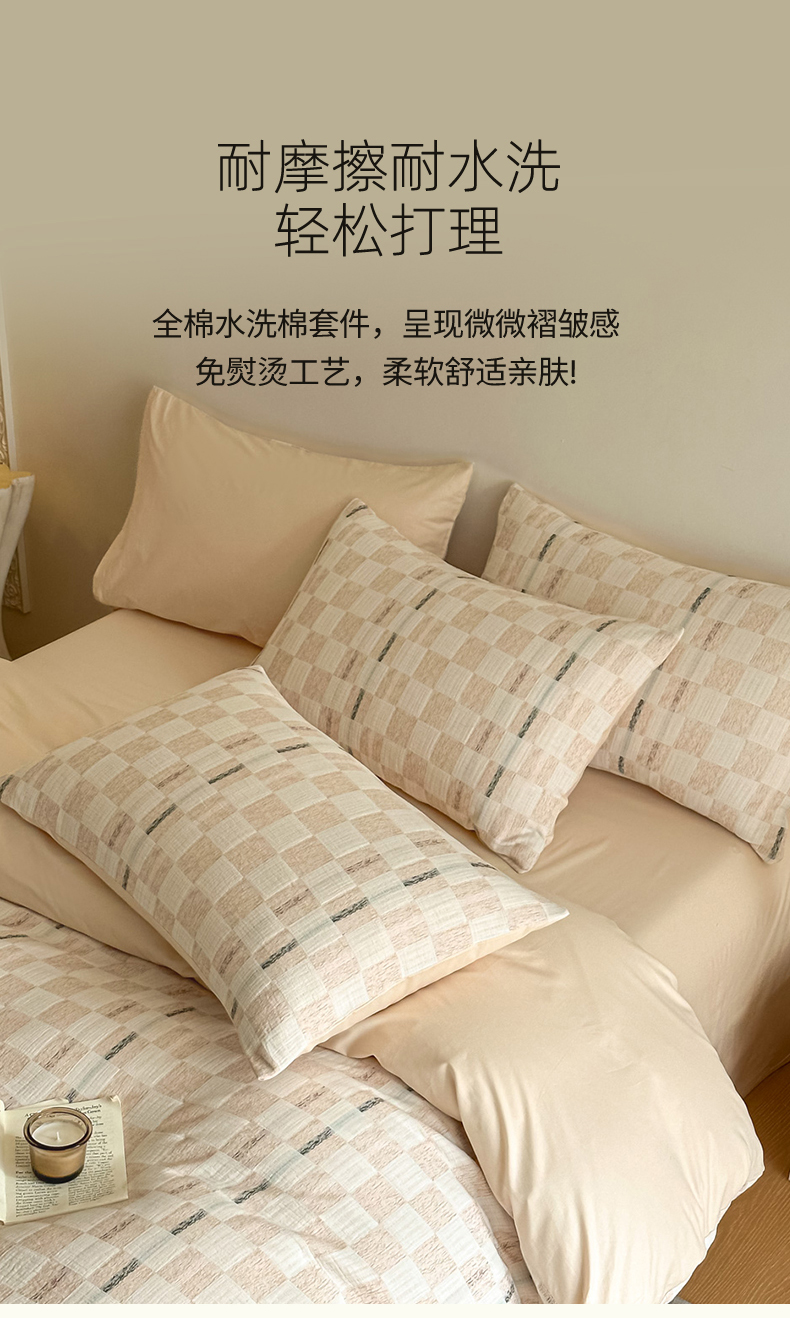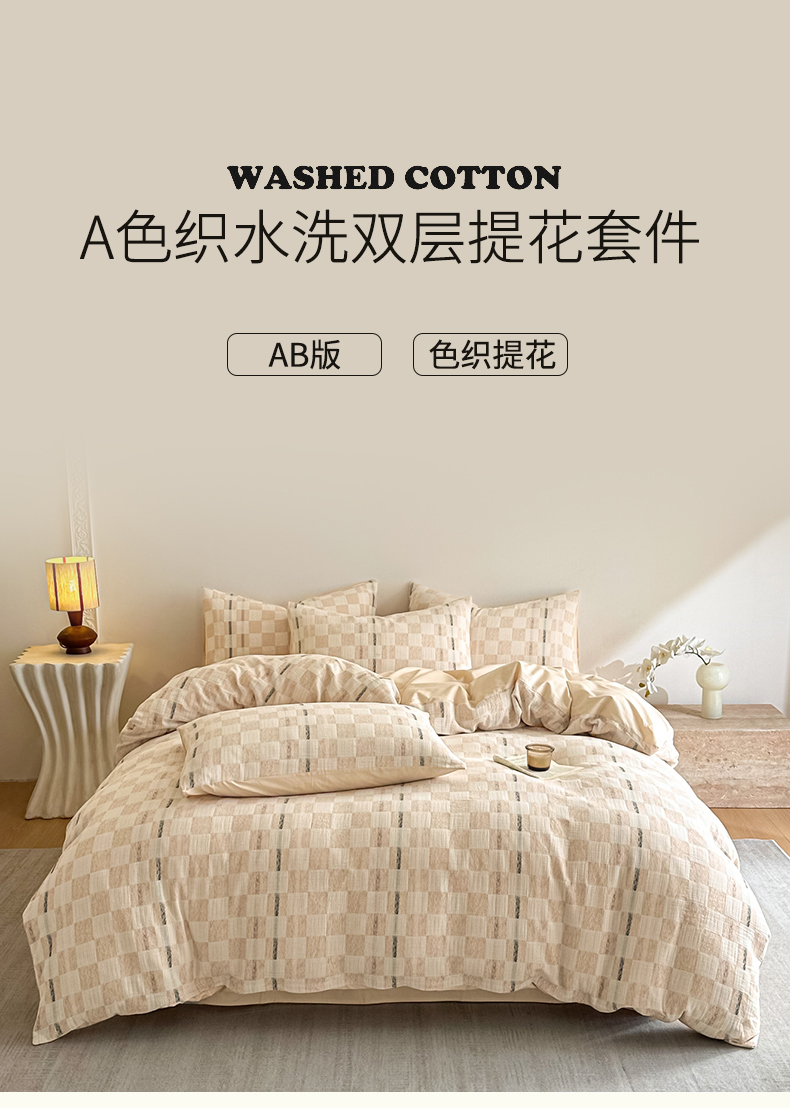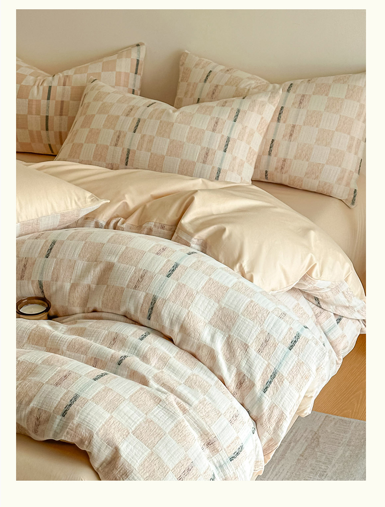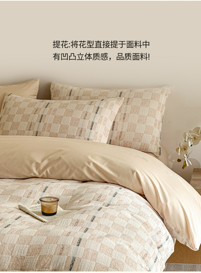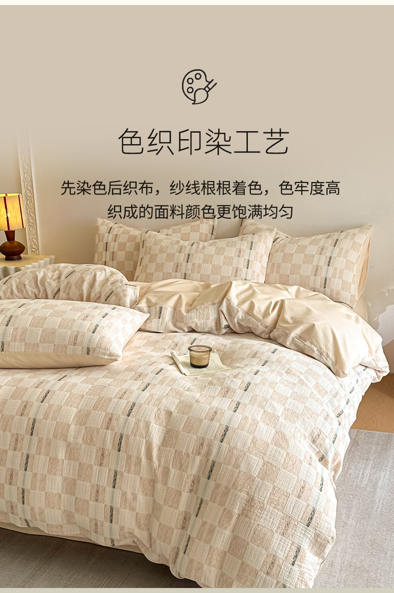 当前位置: 91家纺网 > 商品网购 > 床品套件 > 四件套 > 色织四件套 > 眠博士 2026新款色织水洗双层纱提花四件套 曲奇卡其格