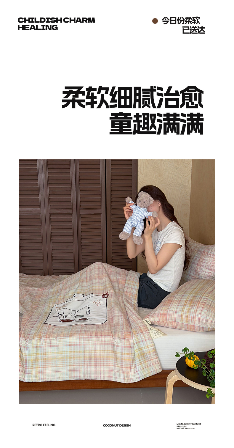 • 91家纺网 家纺一手货源 找家纺 (总)一加一 2026新款全棉双层纱贴布绣大豆夏被-格格乐园,组合图【仅供参考 不可下单】,粉彩早餐熊,粉格小兔,米白小熊,软萌小象,松饼小熊,晚安小象,雾蓝熊语,小熊日记