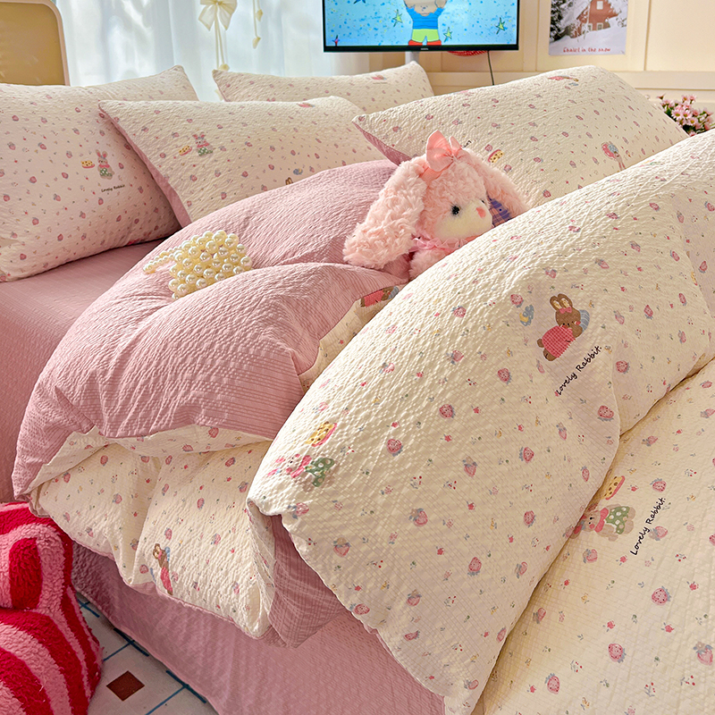 当前位置: 91家纺网 > 商品网购 > 床品套件 > 四件套 > 其它四件套 > 梦纤绒 2026春夏新款简单款泡芙纱印花四件套 水云间