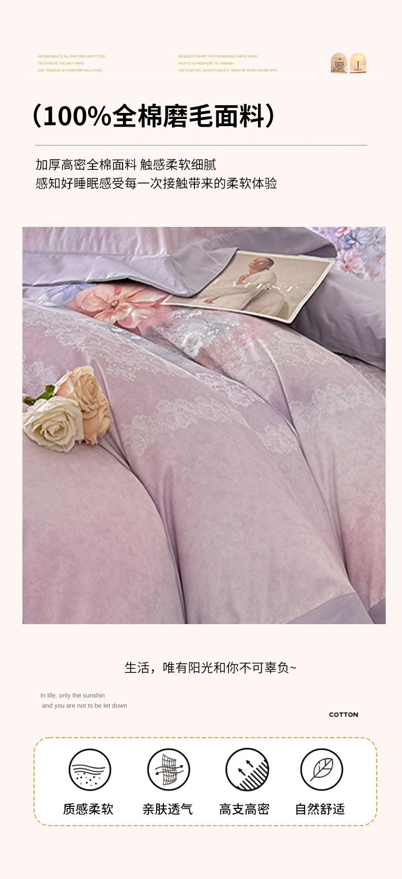 (总)巧玲珑 2026春夏新款新疆棉磨毛花边工艺款四件套,繁花-草绿,繁花-粉,繁花-灰,繁花-卡其,繁花-紫,青禾-草绿,青禾-粉,繁花-豆沙,青禾-灰,青禾-卡其,青禾-紫