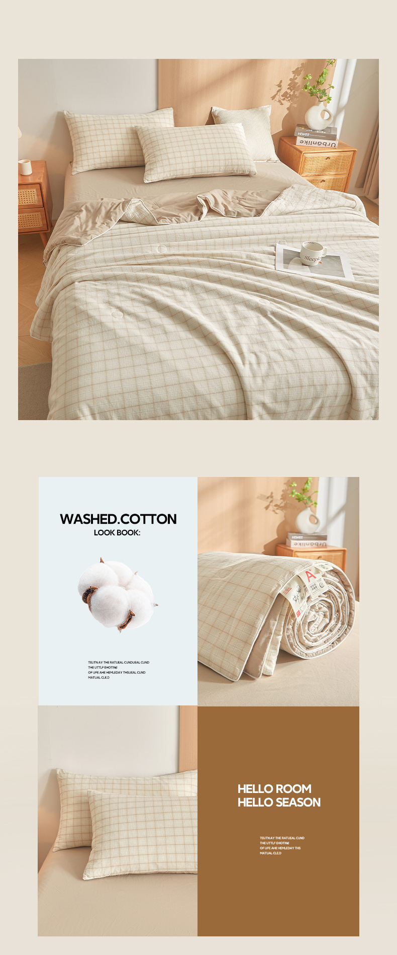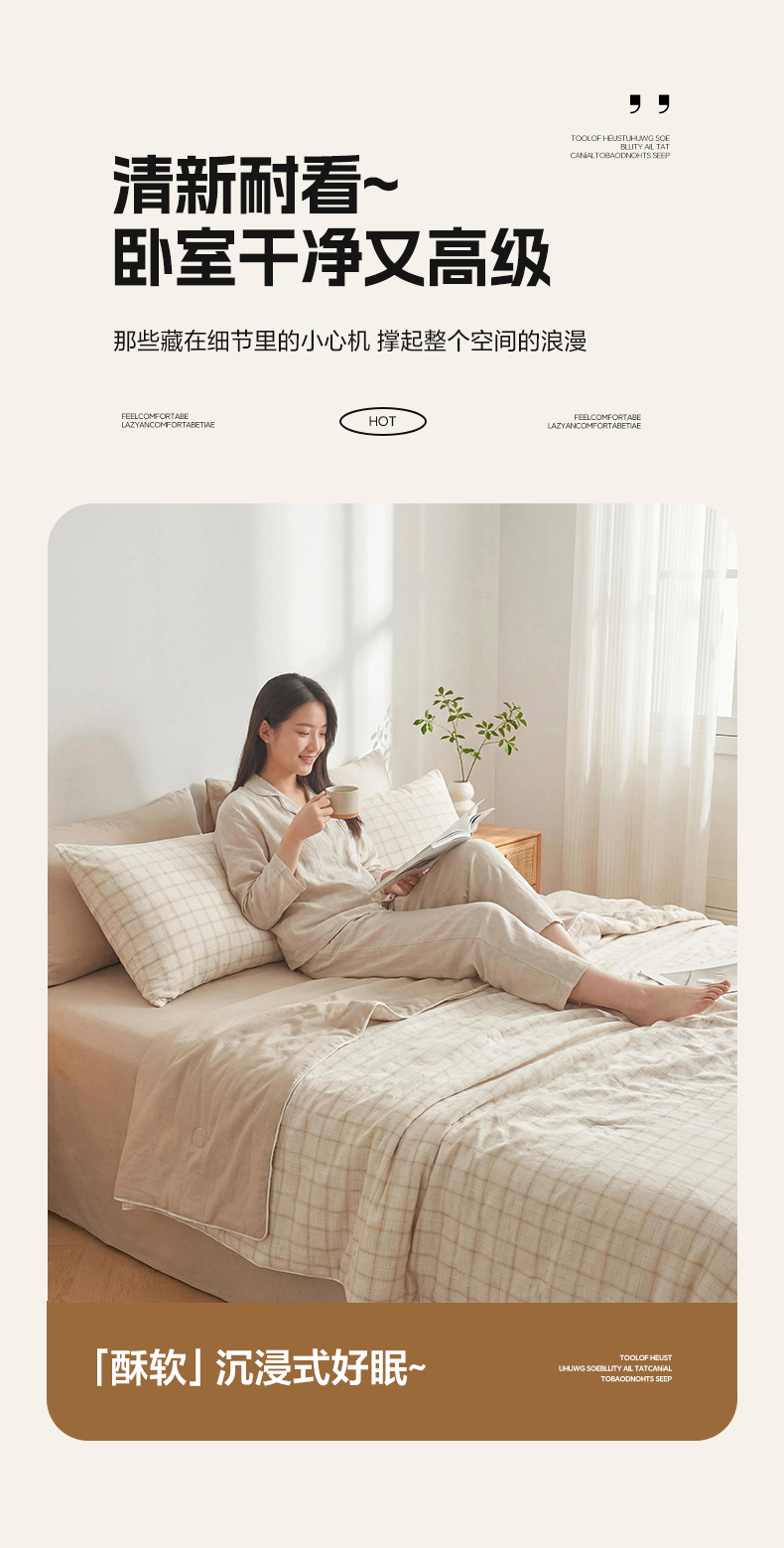 (总)金喜 2026新款A类全棉色织新疆棉夏被四件套,低调米,朵拉咖,琥珀粉,焕花灰,柠檬粉,柠檬兰