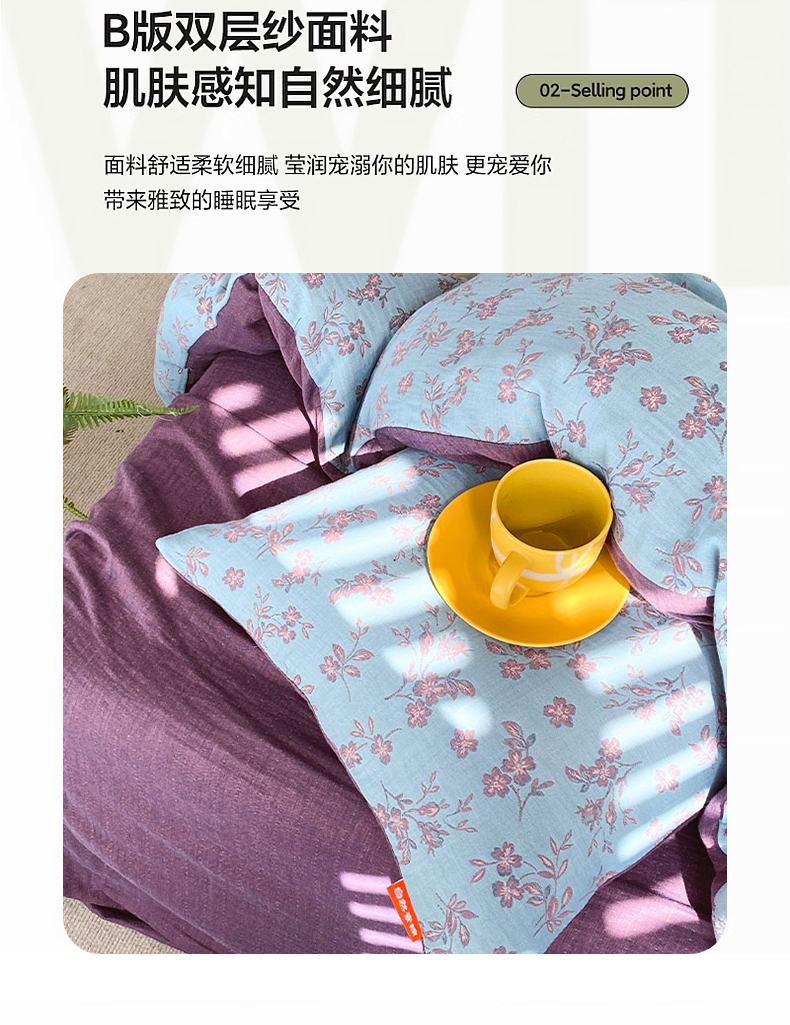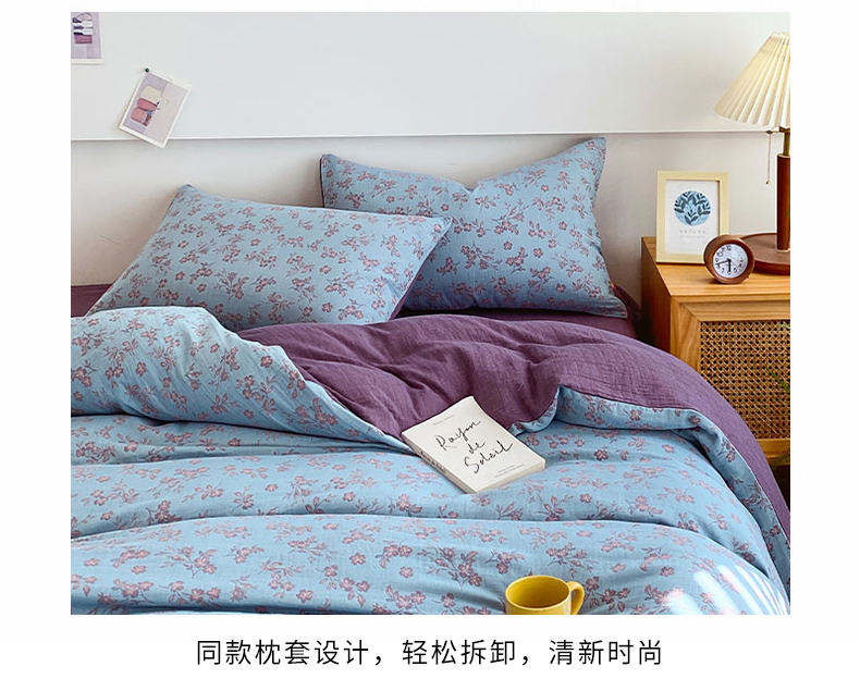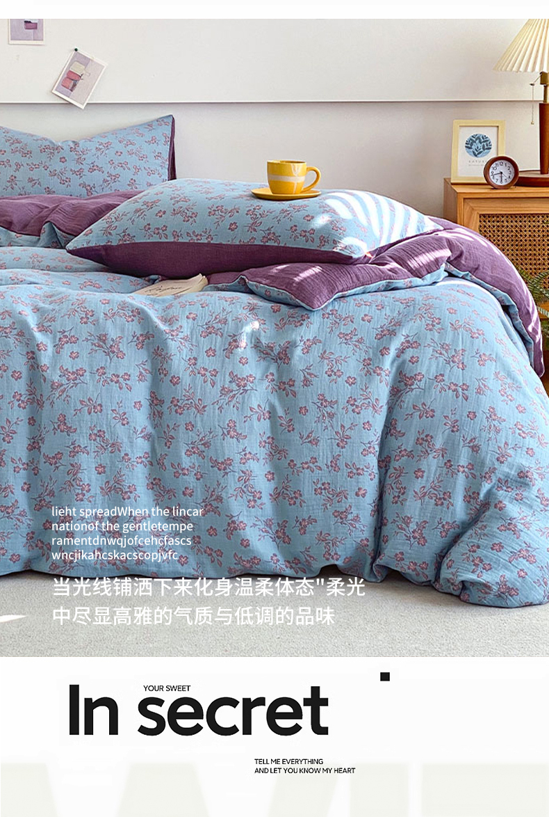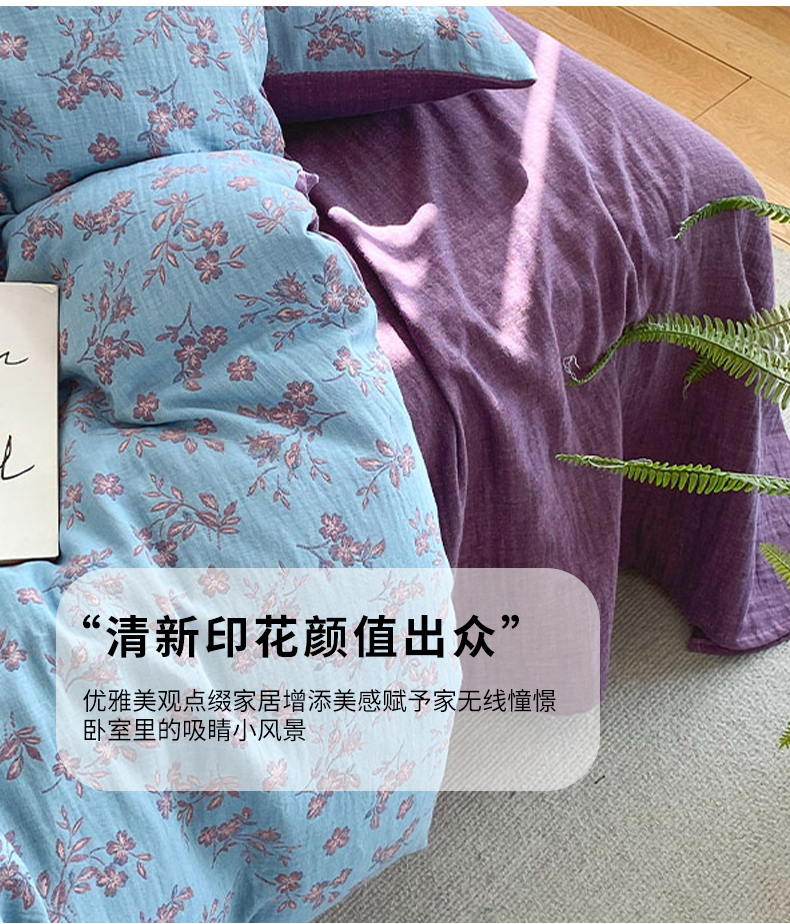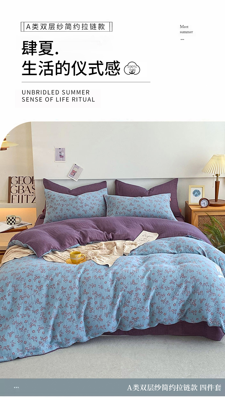 当前位置: 91家纺网 > 商品网购 > 床品套件 > 四件套 > 全棉普通四件套 > 春皖家纺 2026新款全棉纯棉拉链款双层纱四件套 花漾兰