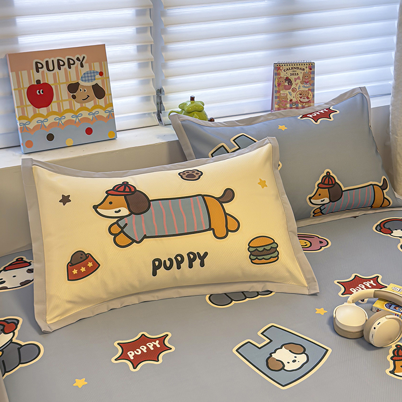 懒猫家纺 2026新款卡通冰丝印花枕套 冰淇淋小狗