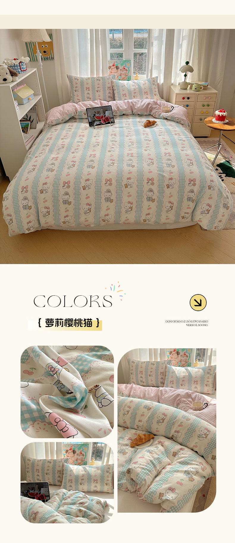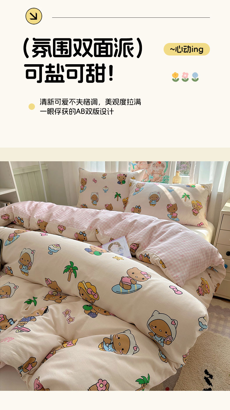 (总)六巷胡同 2025新款INS童趣可爱风卡通全棉四件套-第四系,彩虹甜筒猫,草莓害羞喵,粉格元气猫,咖格樱桃狗,蓝格嗨皮狗,圣诞麋鹿狗,仙人掌粉象,熊熊猫咪崽