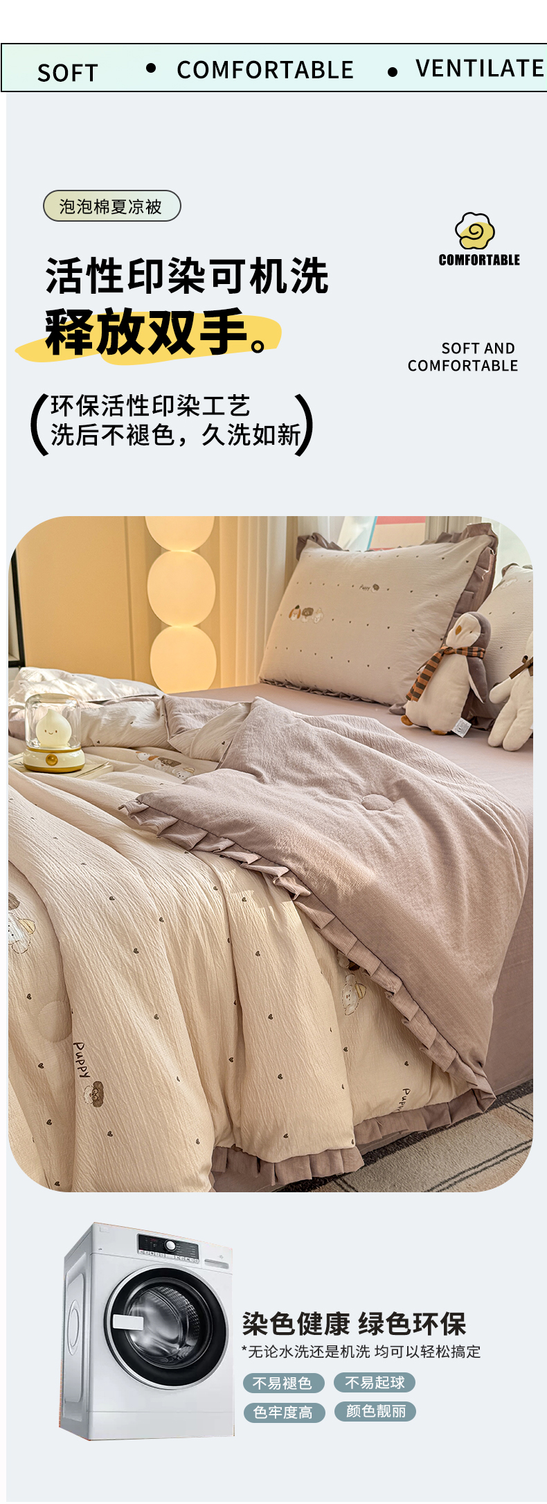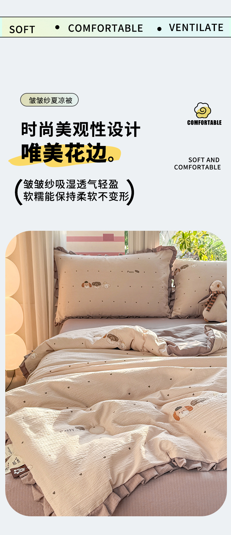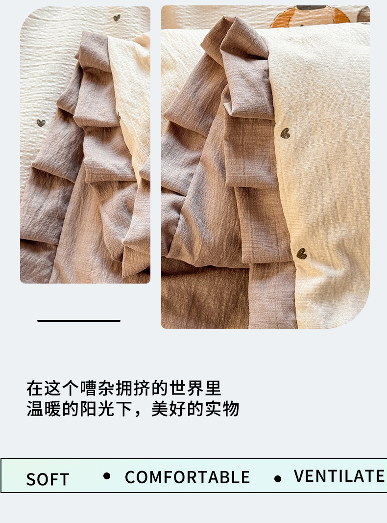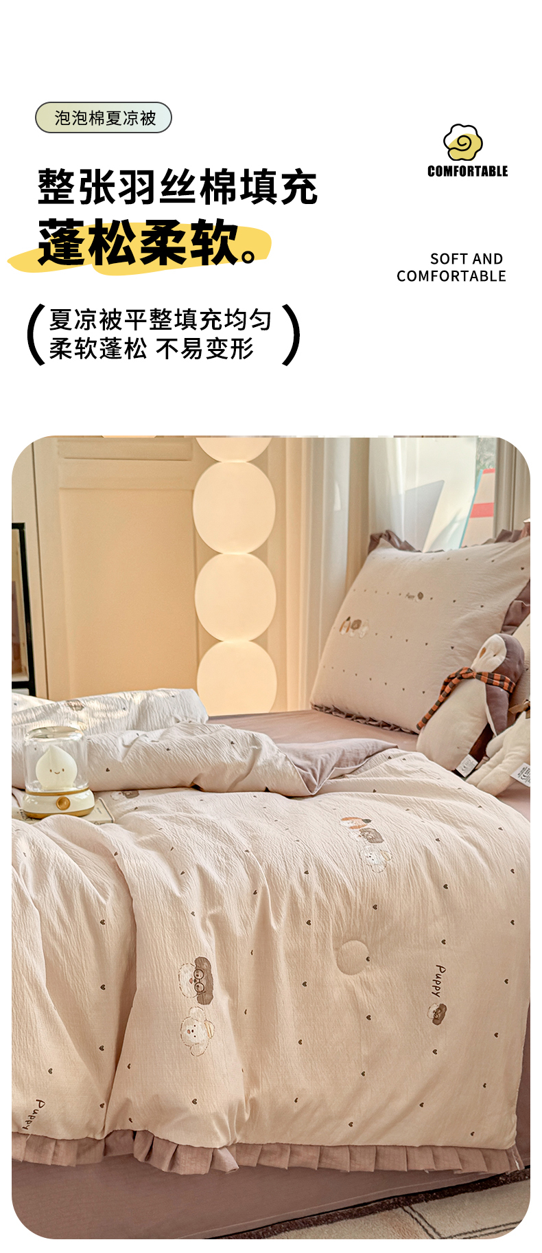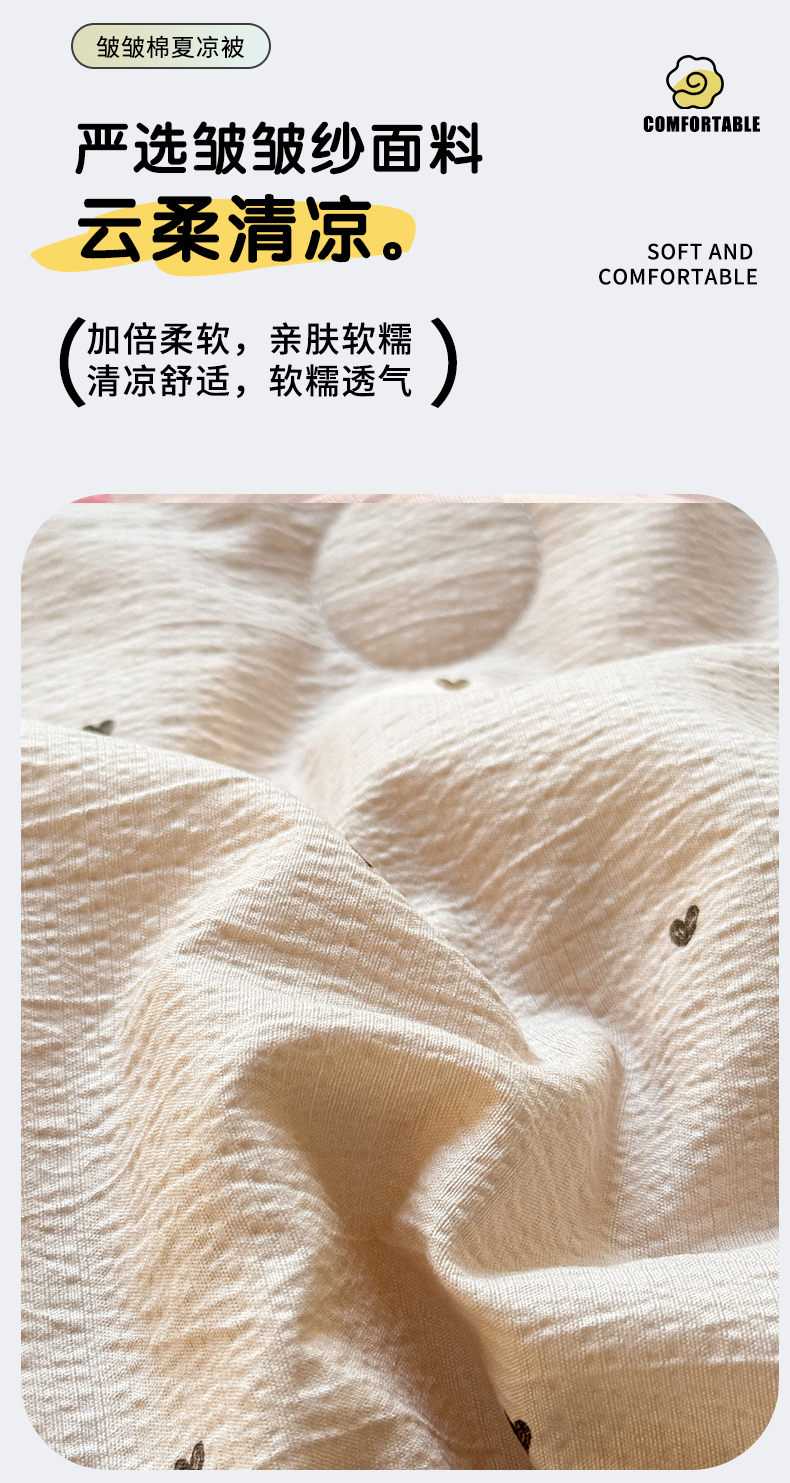 • 91家纺网 家纺一手货源 找家纺 丽美人家纺 2026新款皱皱纱花边夏被被夏凉被空调被 HB爱心小狗