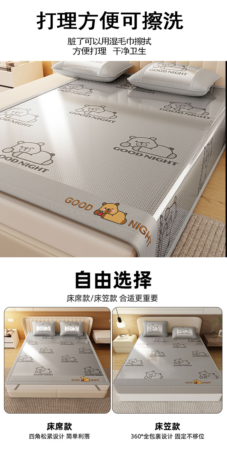 当前位置: 91家纺网 > 商品网购 > 床上用品 > 凉席 > 藤席 > 福来临家纺 2026新款卡皮巴拉小熊款冰藤刺绣凉感席席子凉席-床笠款 冰藤小熊-灰-床笠款