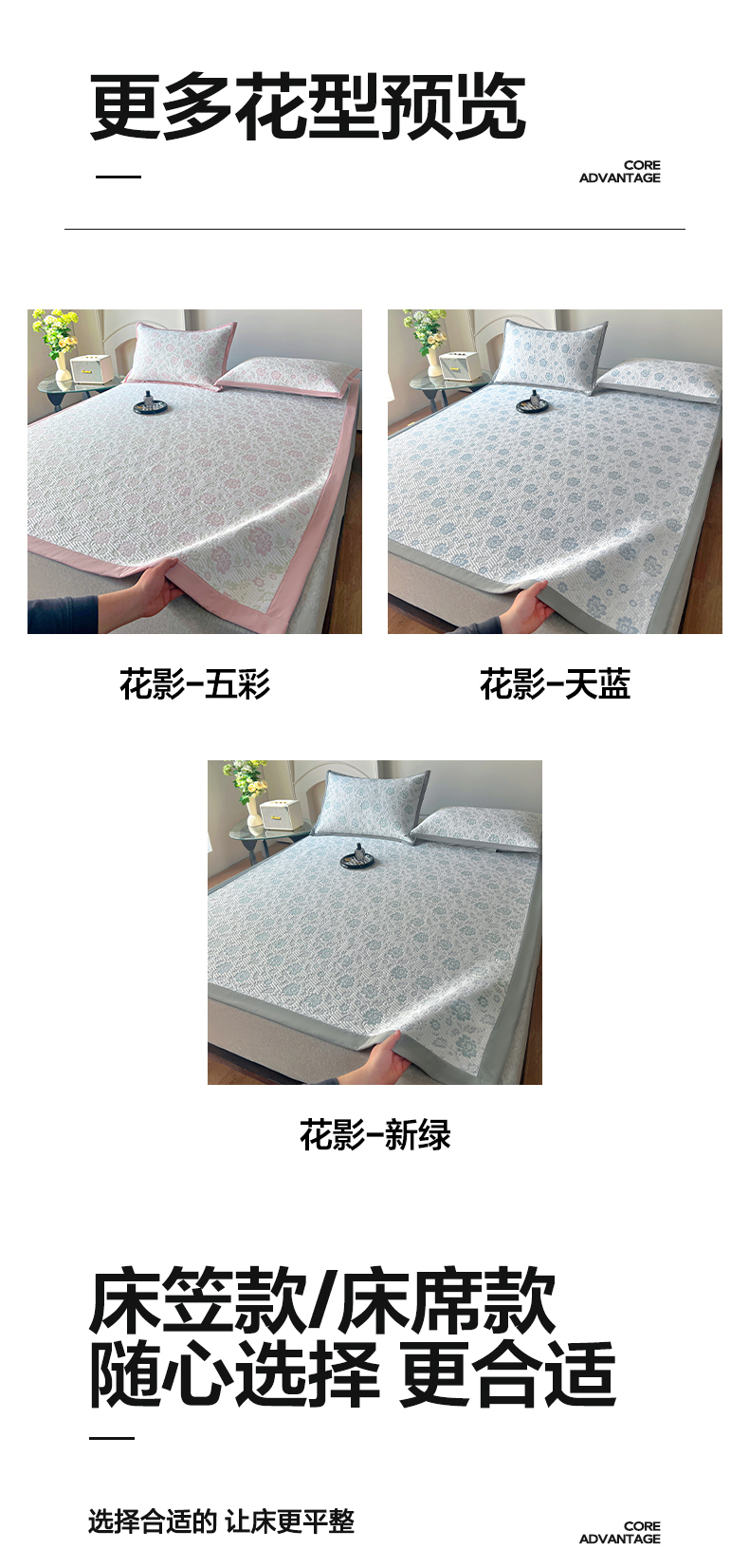 (总)卡初家居(原微来) 2026A类凉豆豆凉感提花床裙席-玫瑰物语,玫瑰物语-浪漫灰,玫瑰物语-柔和粉,玫瑰物语-天空蓝,玫瑰物语-香槟金,玫瑰物语-优雅绿