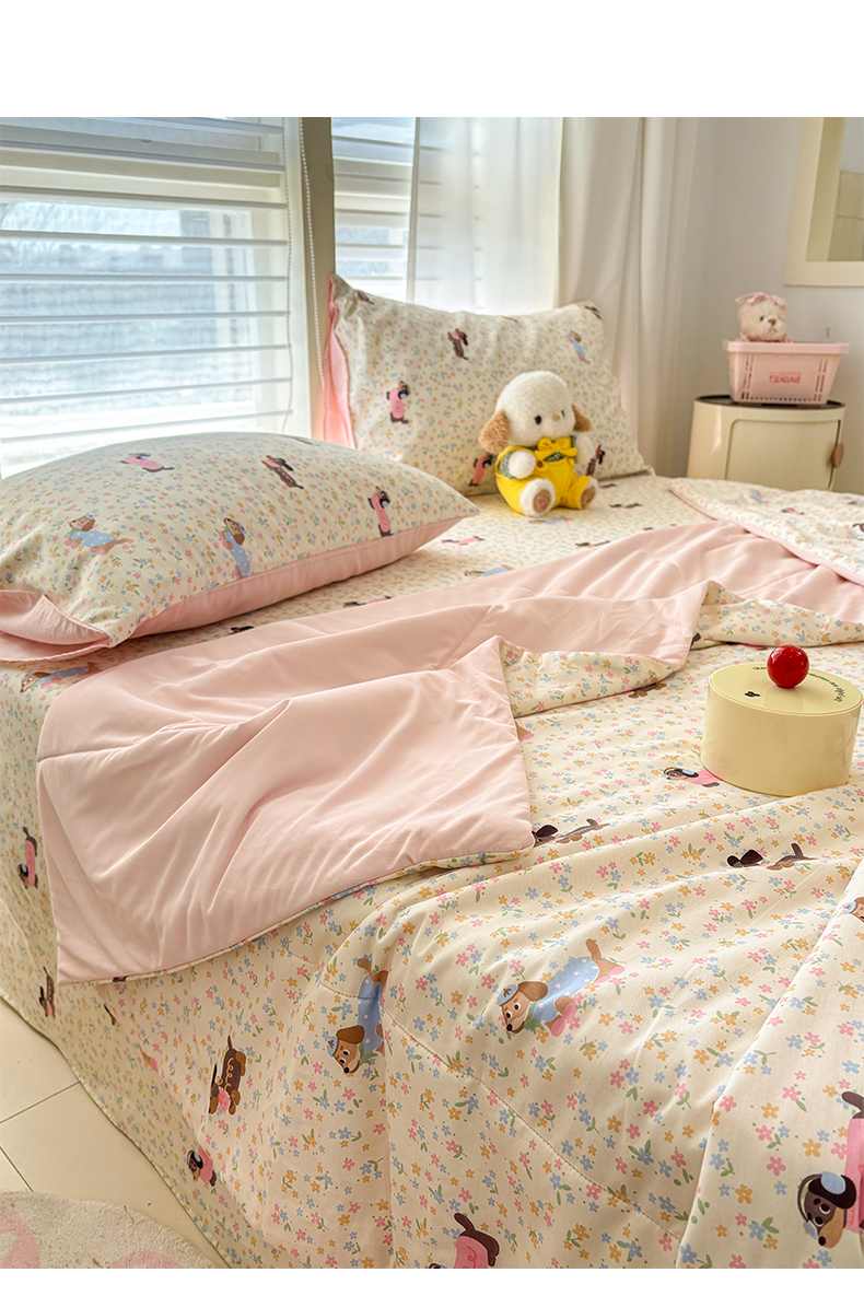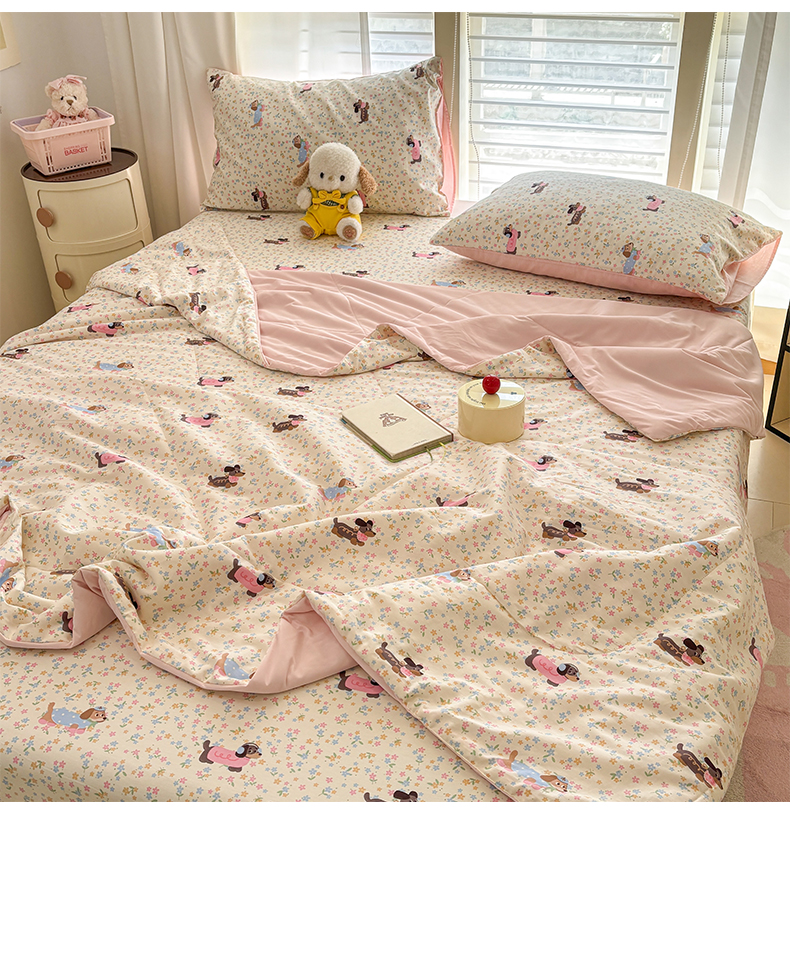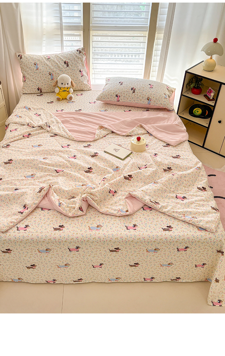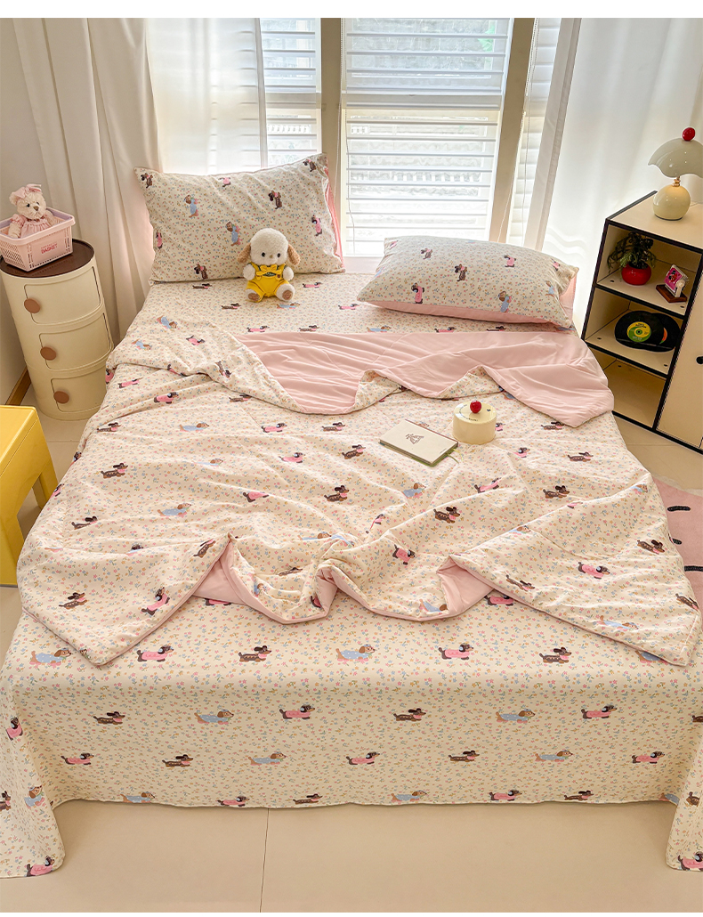 • 91家纺网 家纺一手货源 找家纺 雅居纺家纺 2026新款A版全棉B版凉感夏被夏凉被空调被 夏被 碎花腊肠狗