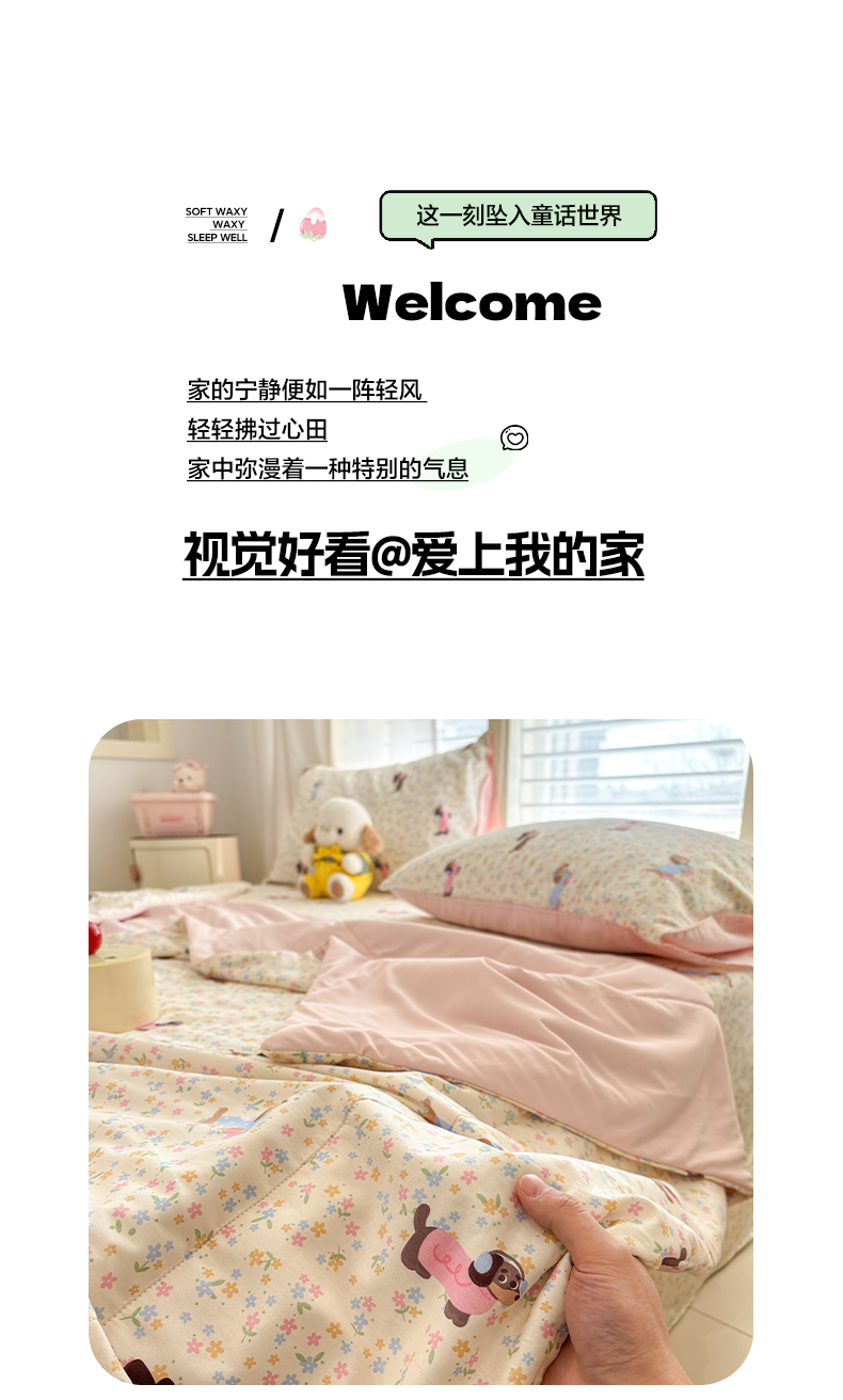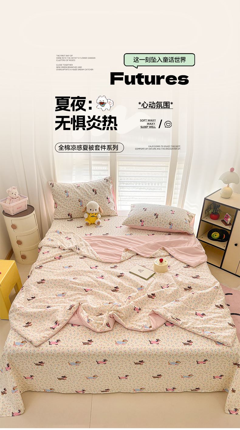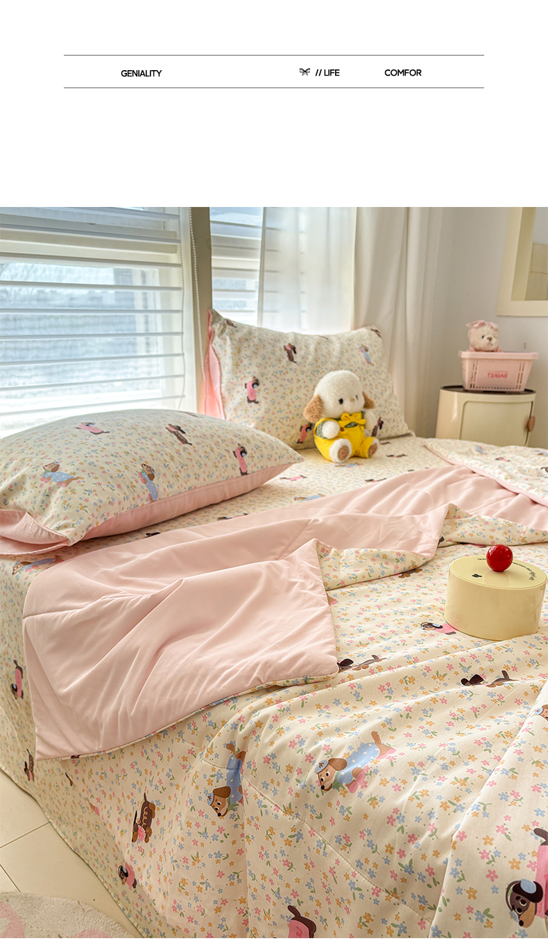• 91家纺网 家纺一手货源 找家纺 雅居纺家纺 2026新款A版全棉B版凉感夏被夏凉被空调被 夏被 碎花腊肠狗