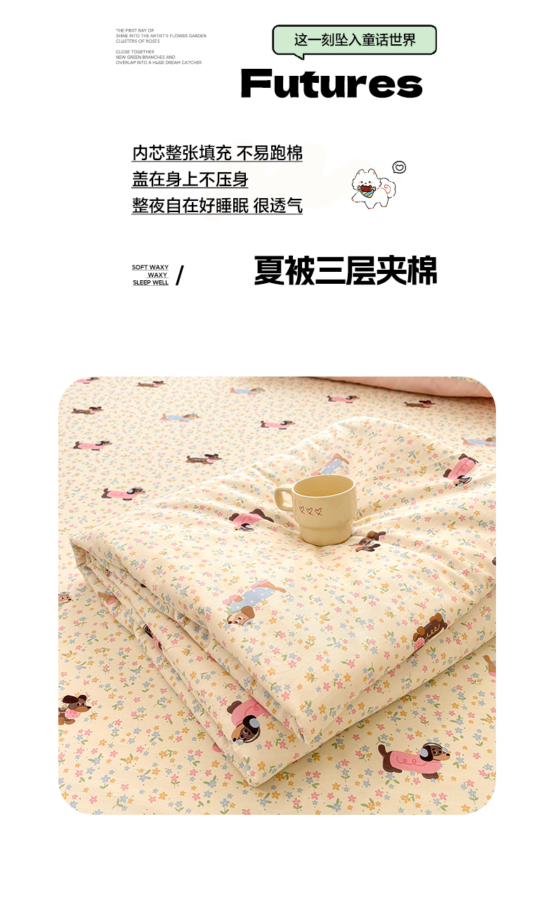 当前位置: 91家纺网 > 商品网购 > 被子 > 夏被 > 雅居纺家纺 2026新款A版全棉B版凉感夏被夏凉被空调被 夏被 碎花腊肠狗