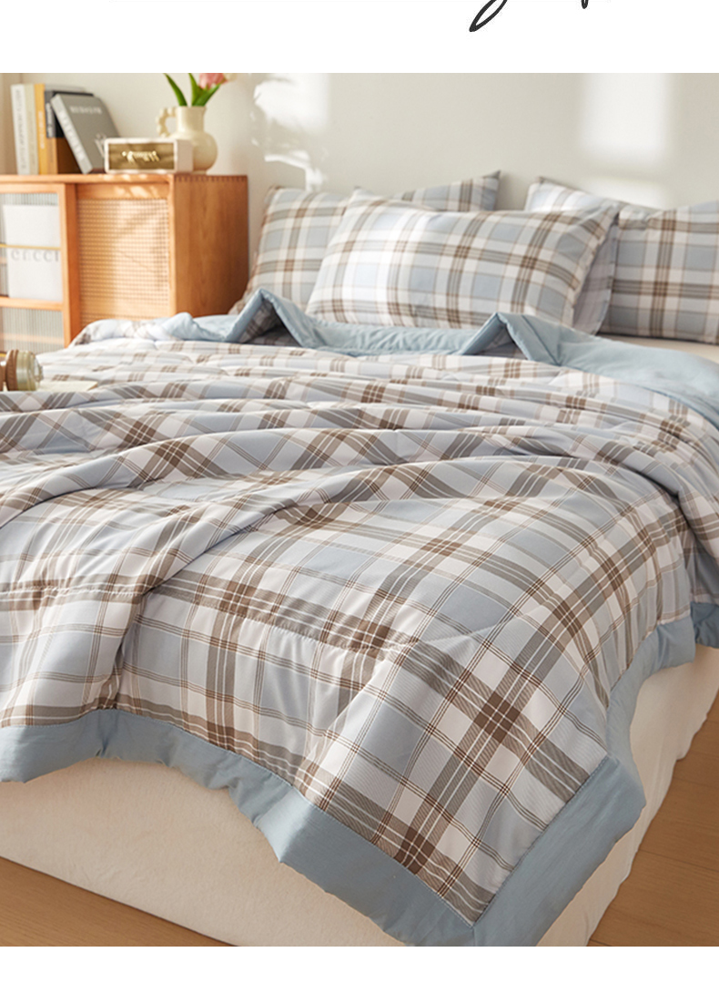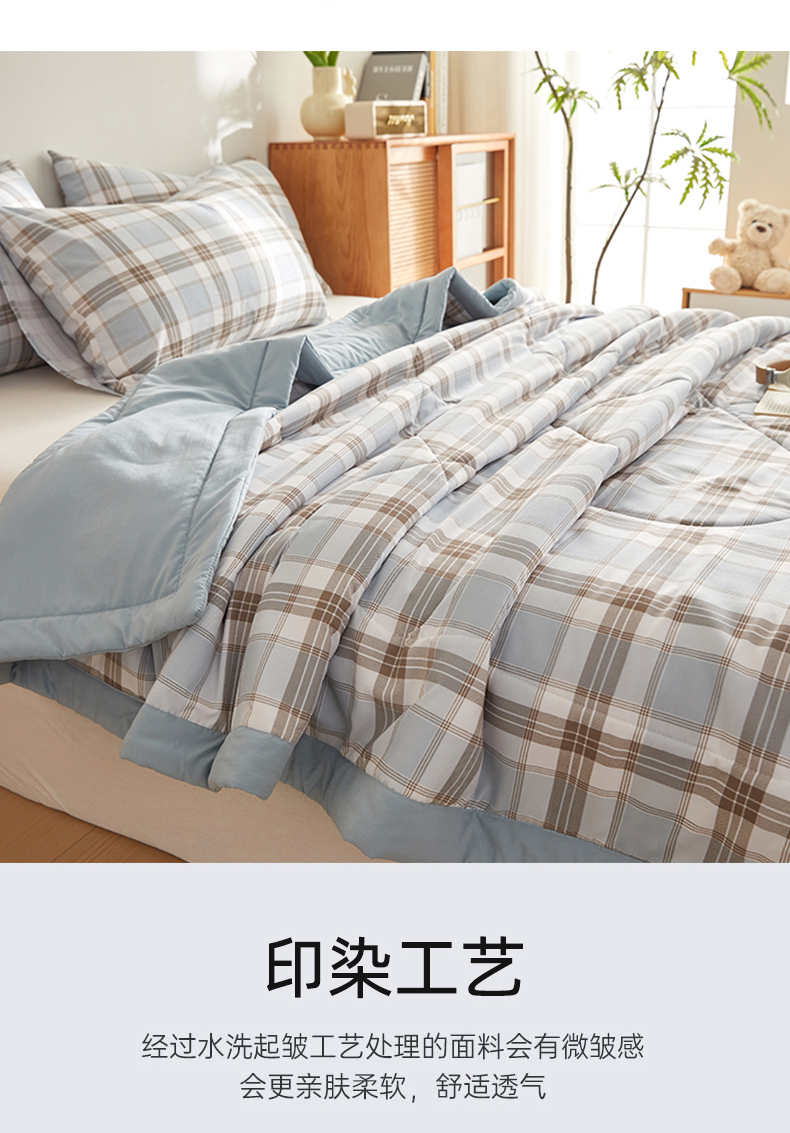 (总)海洋家纺2026新款100%里外全棉夏被格子空调被夏凉被薄被子棉花夏被四件套-风格一,柏拉图 蓝,宝利格 绿,伯克利,格瑞斯,格韵空间,几何空间,菱形格 灰,菱形格 蓝,莫兰迪,时光 格,休闲时光,学院派,雅格 灰,英伦风范,致青春,格调 兰