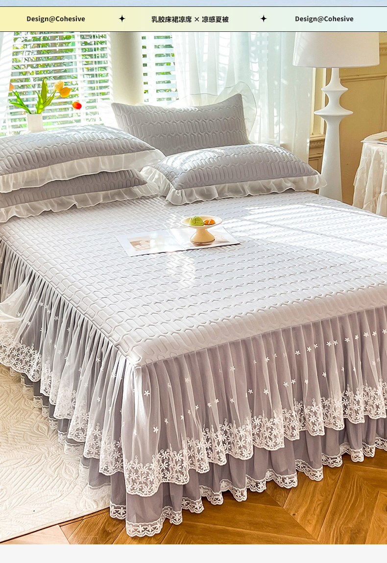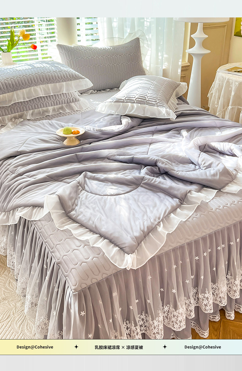 (总)后庭寝室 2026新款冰感豆豆床裙凉席夏被空调被四件套-花语系列,花语-嫩玉,花语-粉色,花语-米色,花语-嫩黄,花语-浅灰,花语-浅蓝,花语-浅紫,花语-水绿