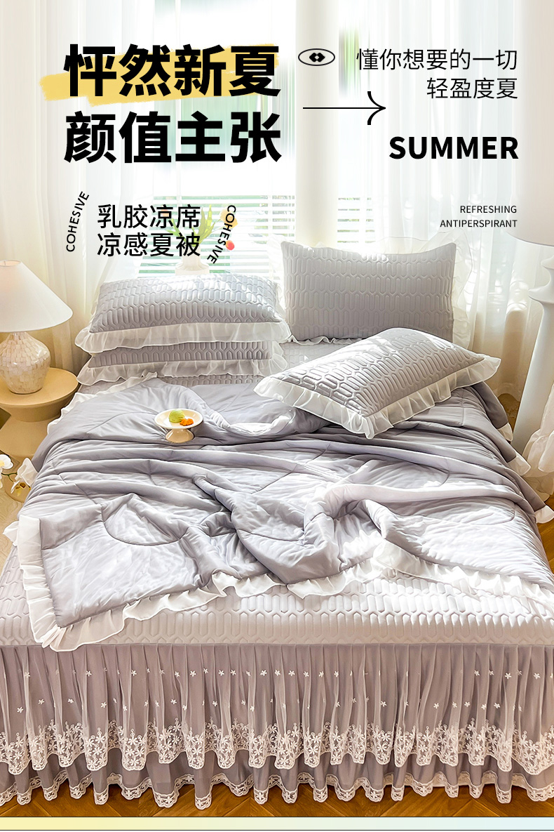 • 91家纺网 家纺一手货源 找家纺 后庭寝室 2026春夏新款乳胶凉席夏凉被空调被夏被四件套-爱意系列 爱意-浅灰